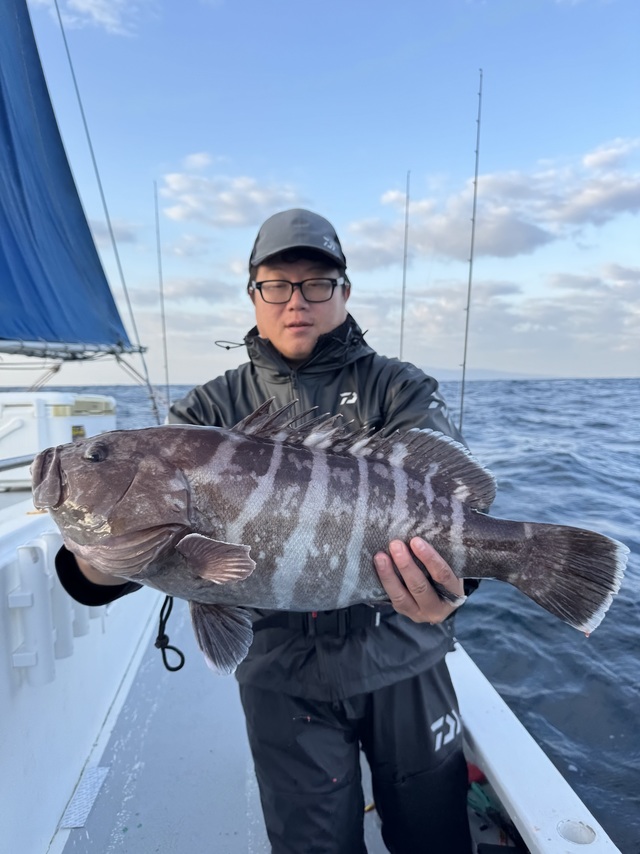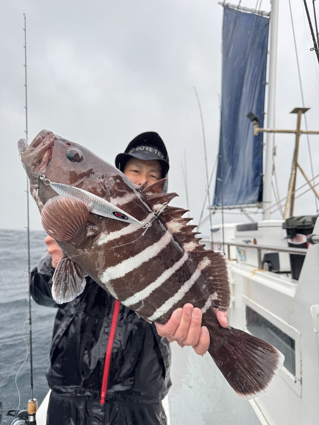 (マエソ)30cm 合計1匹 11/8午前近海スロー船 ハチビキやカンコ、メバル、 キントキ、ムツなどゲストのアタリ ポツポツとありながら マハタ5キロ浮上ーー!! からのドカーンとヒラマサ24キロ浮上!! 強烈な引きでしたね!! 万全なタックルでチャレンジ お待ちしてます! 明日からもデカイの狙っていきますよー!