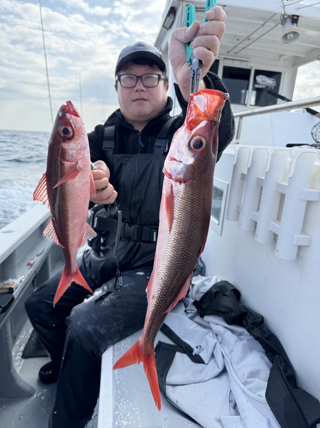 (マエソ)30cm 合計1匹 11/14テンヤルアー船 ビギナー様含めて皆様ルアーでの チャレンジでした! 反応の割に活発にルアーを追ってくる ような活性が無いのかアタリは単発でしたが キントキやウッカリなど美味しいゲストが 良型混じりに顔見せてくれました! 16日(日)午後ティップラン空きあり ※お願い 午後便ご予約のお客様へ 土日祝日など道路混雑が予想される為、 早めの出発をお願い致します。 港の駐車場が狭く早く到着されて しまった場合は午前便のお客様の 車で停められない可能性がございます。 その場合は港入り口を駐車場の 反対側の左側に入っていただき 空いているスペースで駐車場が空くまでお待ちください。 また可能なお客様は なるべく車は乗合いで台数を減らしてきていただけますと助かります。 ご迷惑をおかけいたしますが 宜しくお願い致しますm(__)m