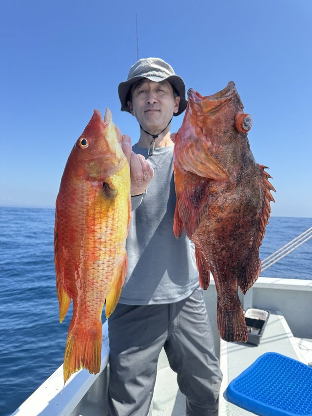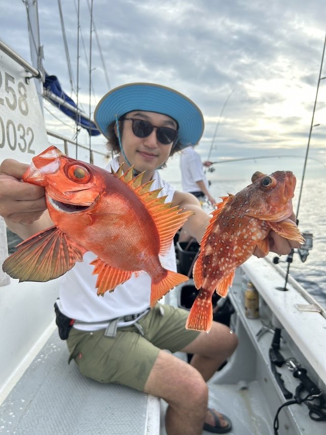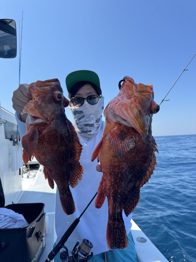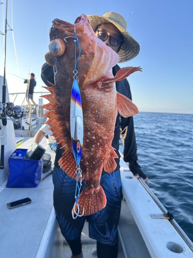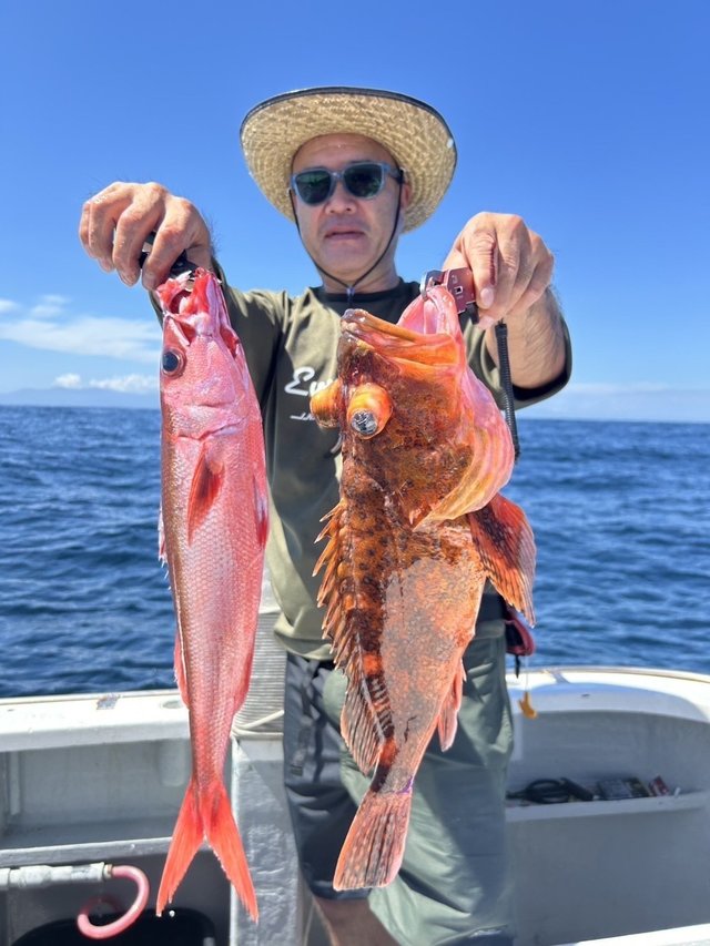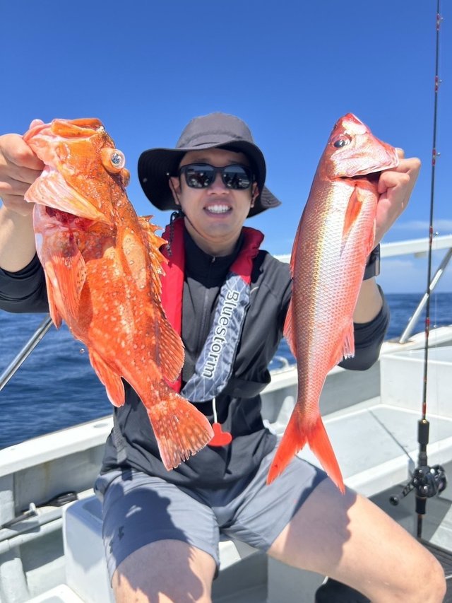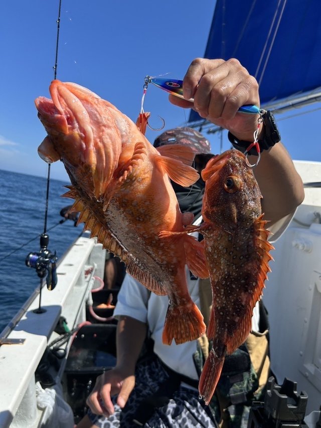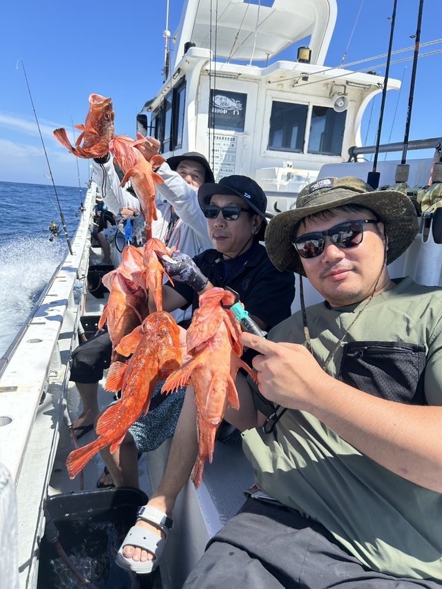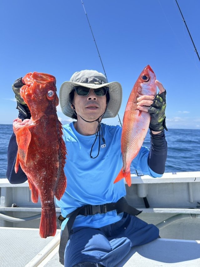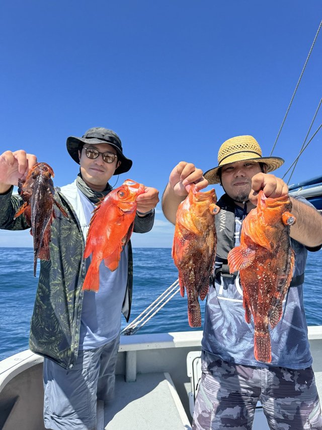 9/8午前テンヤルアー船 潮悪く二枚潮の場所多くて なかなか簡単にアタリが 出てくれませんでしたが ポイント転々と移動して釣り方が合った 方はカンコやアカイサキなど 連チャンでヒットする流しもありました! 良い流れに期待して明日からも 色々狙っていきましょう! 明日9日(火) 近海スロー船空席多数 テンヤルアー船満席 10日(水)定休日 11日(木) 近海スロー船空席多数 テンヤルアー船空席多数 12日(金) 近海スロー船あと1名で出船確定 テンヤルアー船あと1名で出船確定 13日(土) テンヤルアー船に1名様空きでました 14日(日) 満席