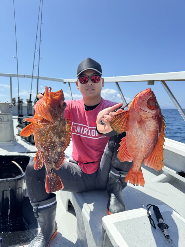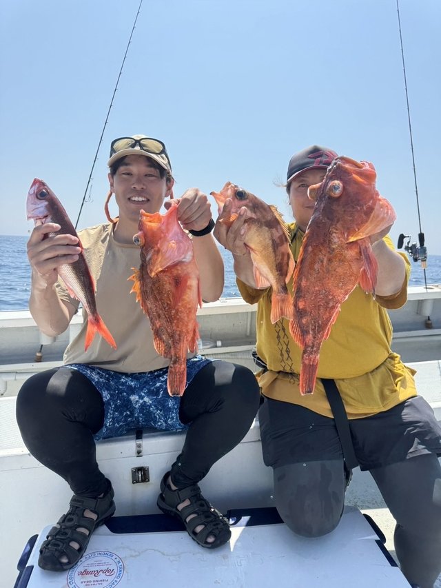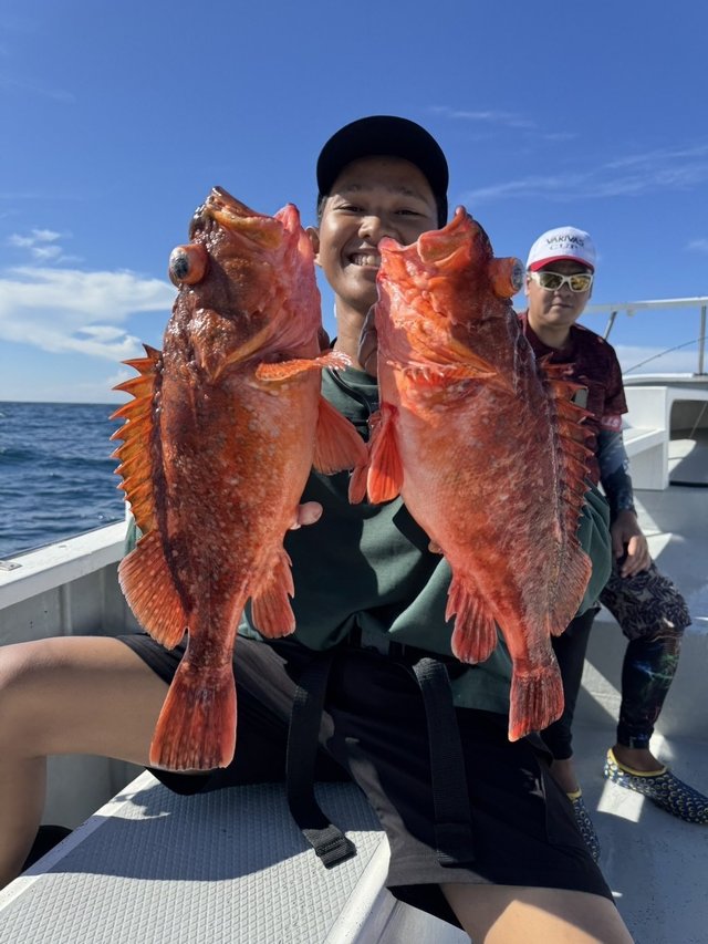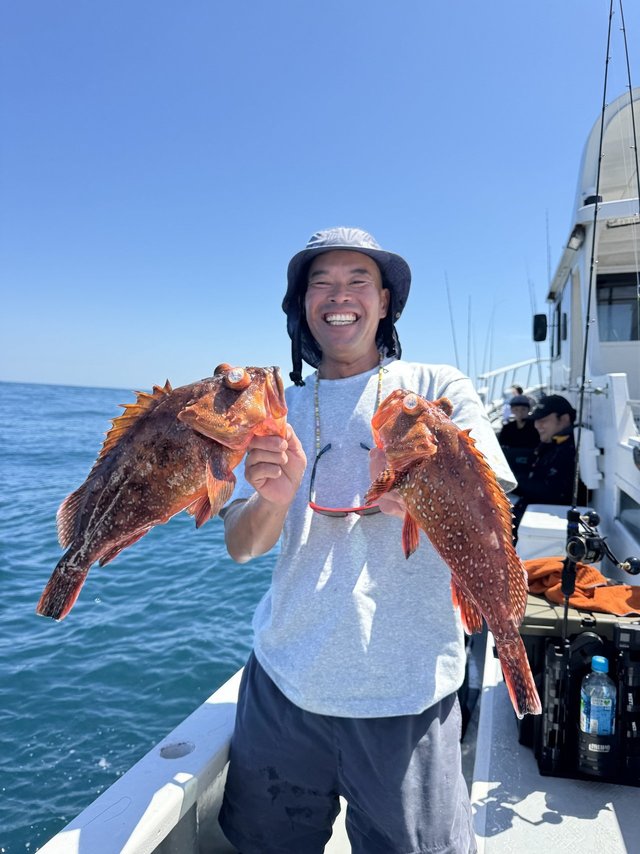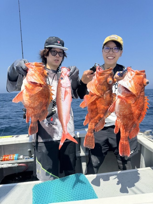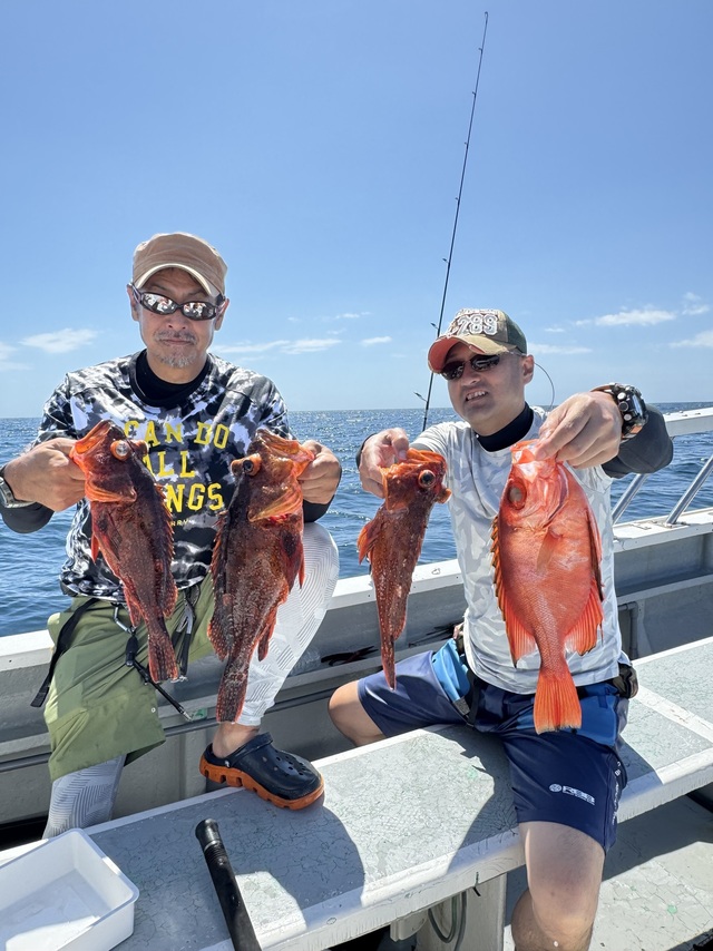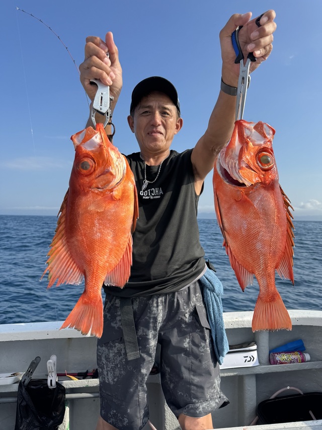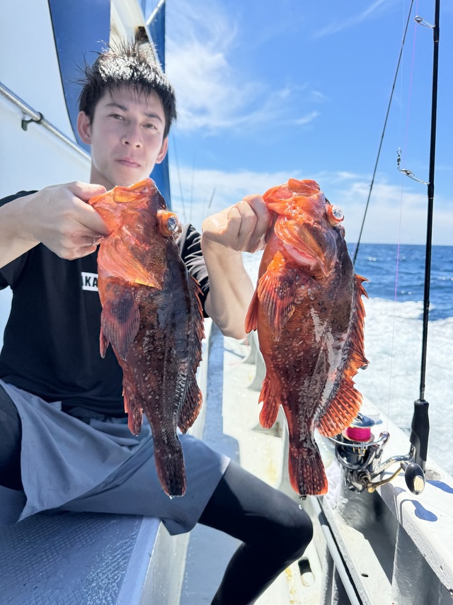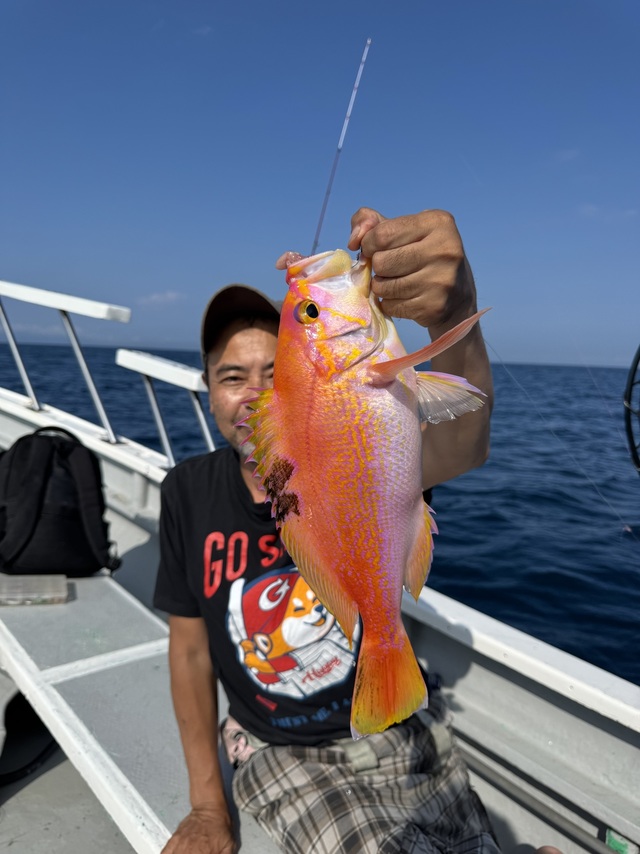 9/8午前テンヤルアー船 潮悪く二枚潮の場所多くて なかなか簡単にアタリが 出てくれませんでしたが ポイント転々と移動して釣り方が合った 方はカンコやアカイサキなど 連チャンでヒットする流しもありました! 良い流れに期待して明日からも 色々狙っていきましょう! 明日9日(火) 近海スロー船空席多数 テンヤルアー船満席 10日(水)定休日 11日(木) 近海スロー船空席多数 テンヤルアー船空席多数 12日(金) 近海スロー船あと1名で出船確定 テンヤルアー船あと1名で出船確定 13日(土) テンヤルアー船に1名様空きでました 14日(日) 満席