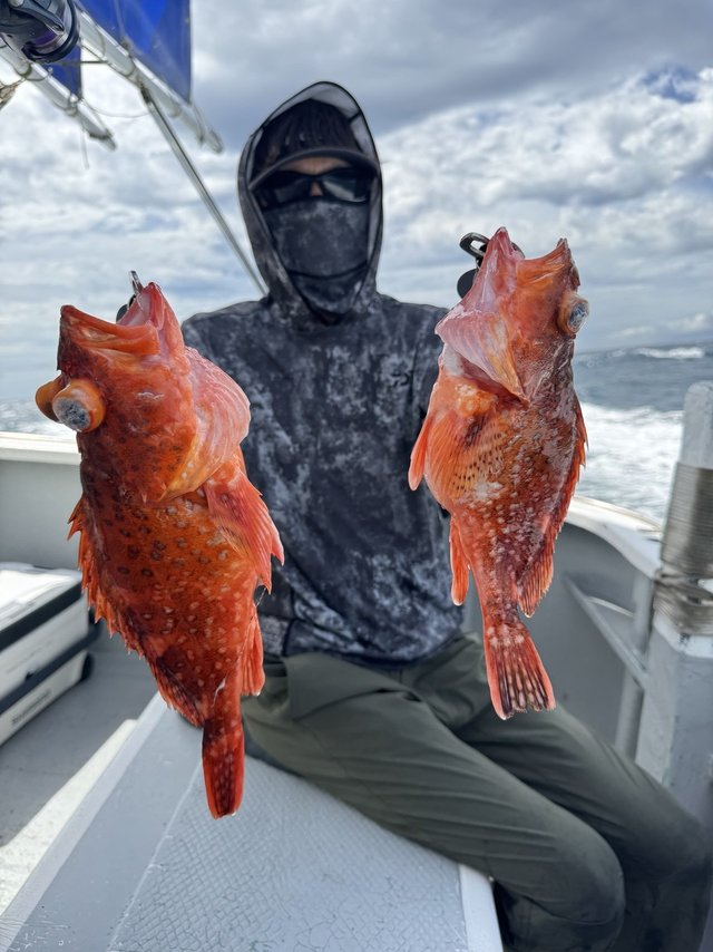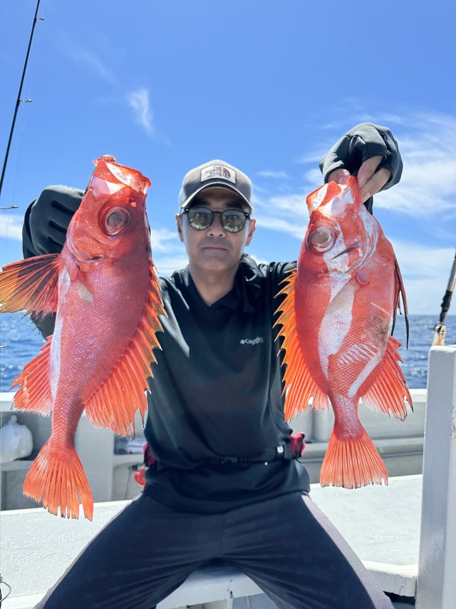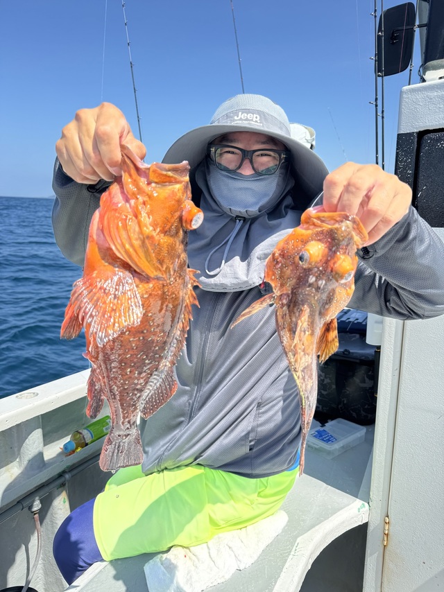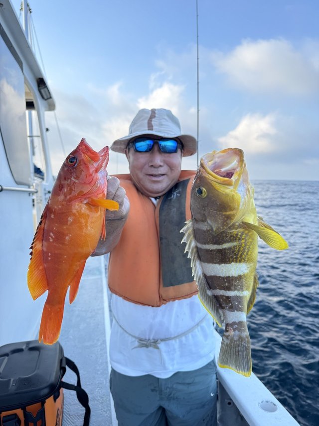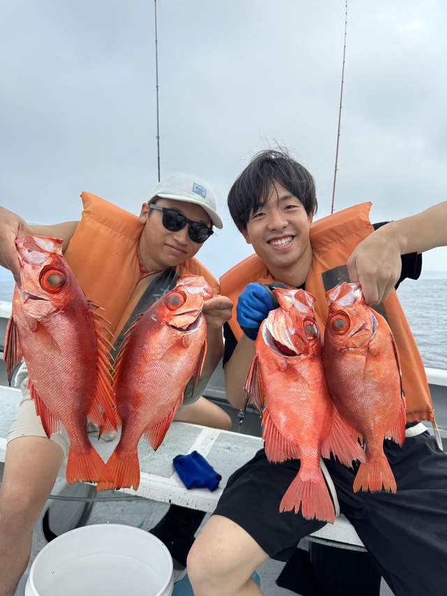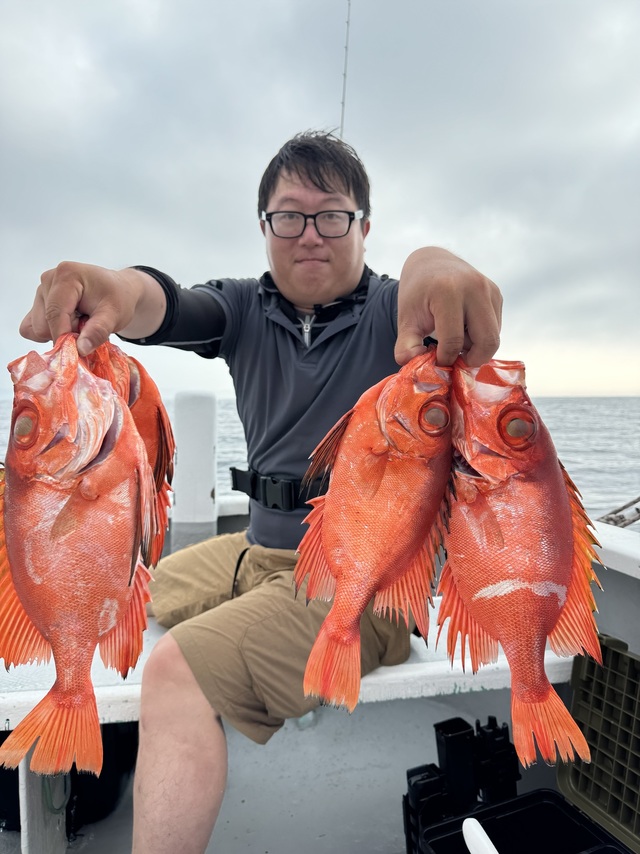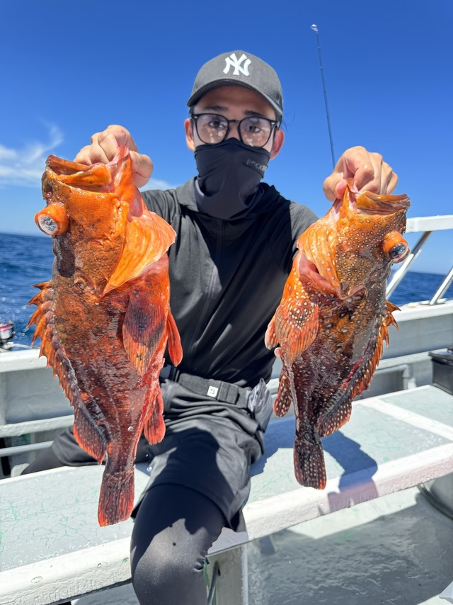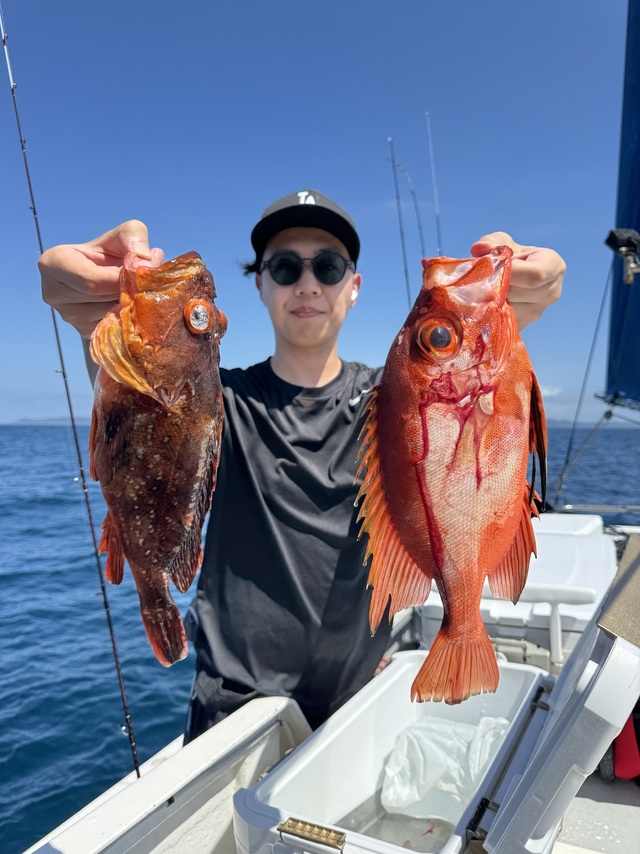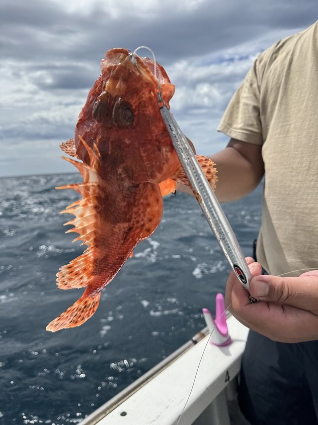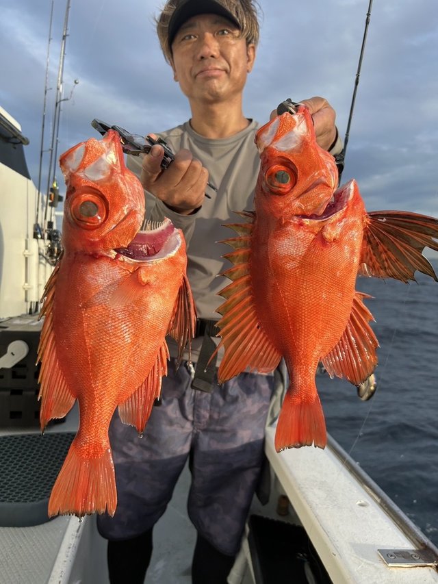 9/8午前テンヤルアー船 潮悪く二枚潮の場所多くて なかなか簡単にアタリが 出てくれませんでしたが ポイント転々と移動して釣り方が合った 方はカンコやアカイサキなど 連チャンでヒットする流しもありました! 良い流れに期待して明日からも 色々狙っていきましょう! 明日9日(火) 近海スロー船空席多数 テンヤルアー船満席 10日(水)定休日 11日(木) 近海スロー船空席多数 テンヤルアー船空席多数 12日(金) 近海スロー船あと1名で出船確定 テンヤルアー船あと1名で出船確定 13日(土) テンヤルアー船に1名様空きでました 14日(日) 満席