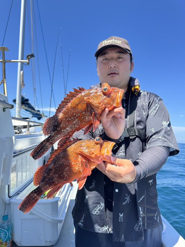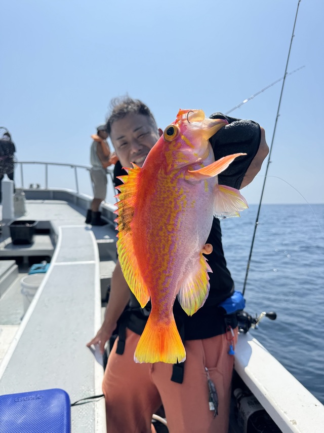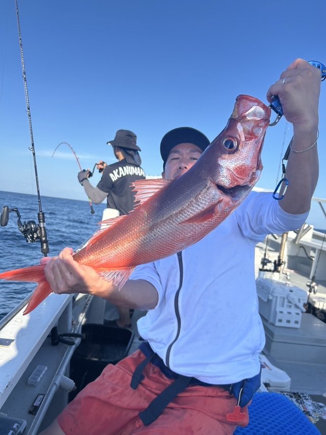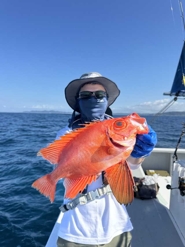 (マエソ)30cm 合計1匹 9/6午前テンヤルアー船 開始から誘いが合った方は入れ食状態! アカハタ、カサゴ、キジハタ、カンダイと よくヒットしてくれました! ポイント転々と回ってキントキ、 デカンコ、アカイサキと魚種多彩に キャッチ!! 明日からも色々狙っていきましょー!