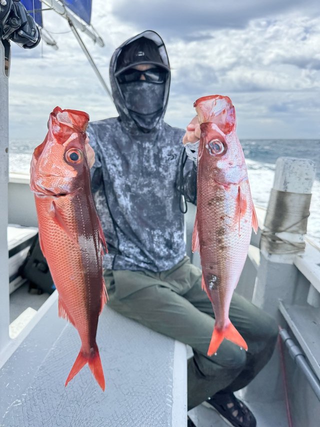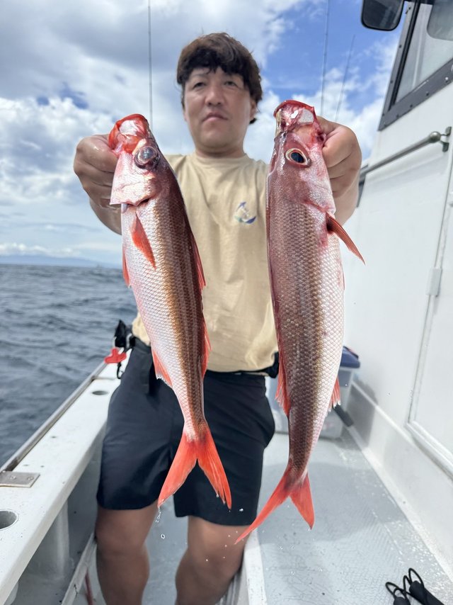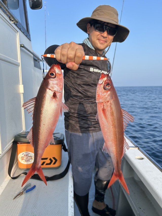 (マエソ)30cm 合計1匹 9/7近海スロー船 狙いのポイントは二枚潮キツくて 釣りにくく難易度が高かったです! 潮目を避けながら転々として周っていき 皆さんの頑張りでポツポツとアタリを 拾っていただけました ムツ、キントキ、ウッカリ、ハチビキ、 メバル、アヤメ、マハタなど キャッチでした! 最後に大物ヒットありましたが 根に走られてしまいブレイクで残念! 明日8日(月) 近海スロー船空席多数 テンヤルアー船空席多数 9日(火) 近海スロー船空席多数 テンヤルアー船空き有り 10日(水) 定休日