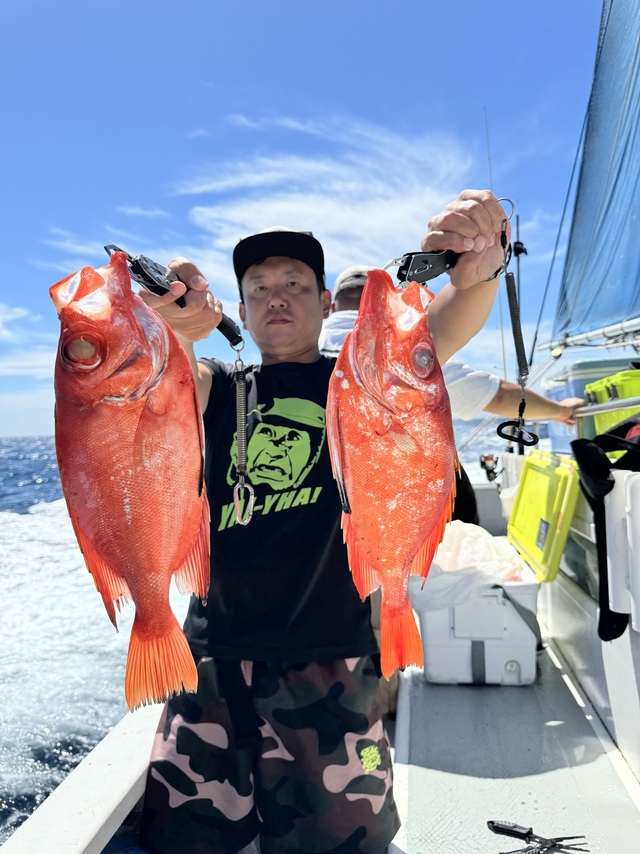 (マエソ)30cm 合計1匹 9/3午前近海スロー船 本日はスロー船のみ出船しました! 今日も反応に乗るとハチビキが元気で ラッシュ突入!! デカンコ、キントキ、オニカサゴ、 マトウダイと上がり マハタは4ヒットの2キャッチー! サイズ良いのが当たってますねー! 明日の乗合い船はテンヤルアー船のみ 出船です!空席あり募集中!