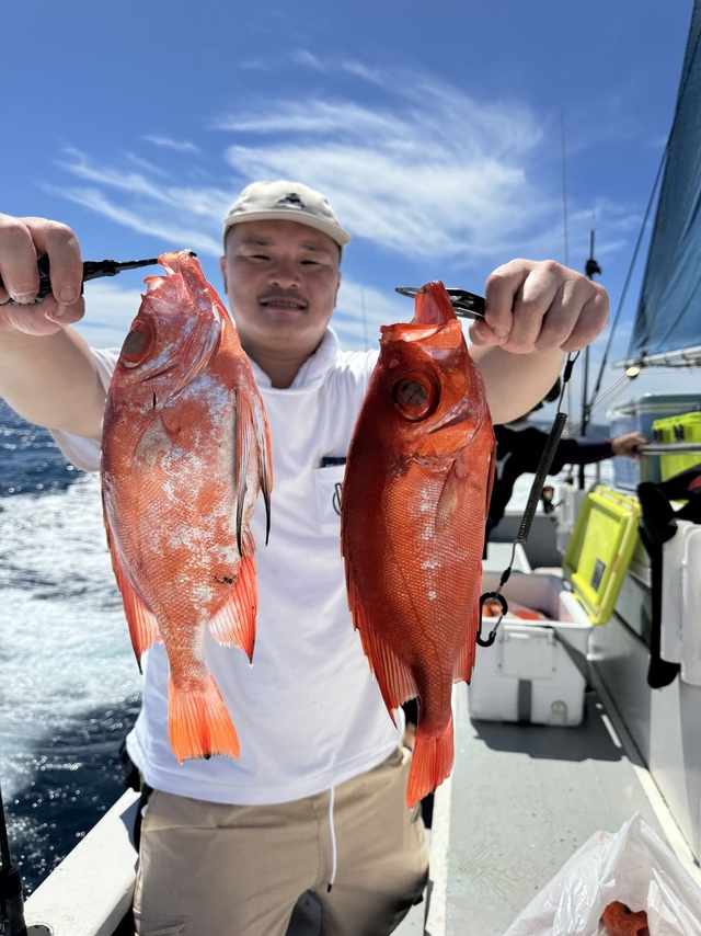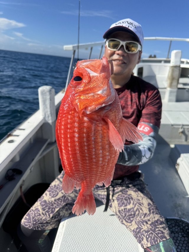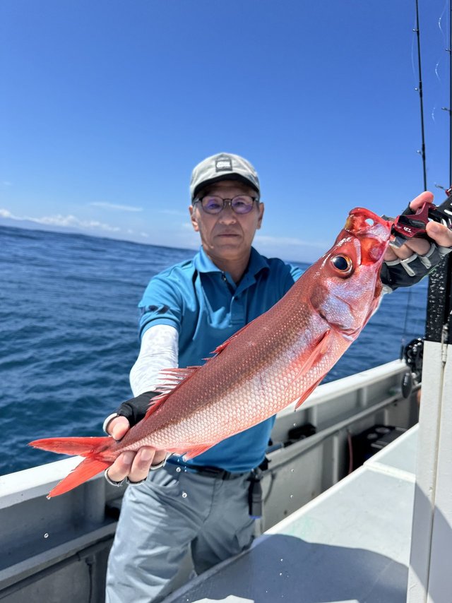 (マエソ)30cm 合計1匹 9/2近海スロー船 今日もアタリ活発!! 終始アタリ続いて ゲストも多彩で絶好調でした! マハタにマダイ、エビスダイに ウッカリ、キントキ、オニカサゴ、 ハチビキ、アヤメなどキャッチ! チャレンジお待ちしております!! 4日(木) 乗合い船はテンヤルアー船のみ募集中!