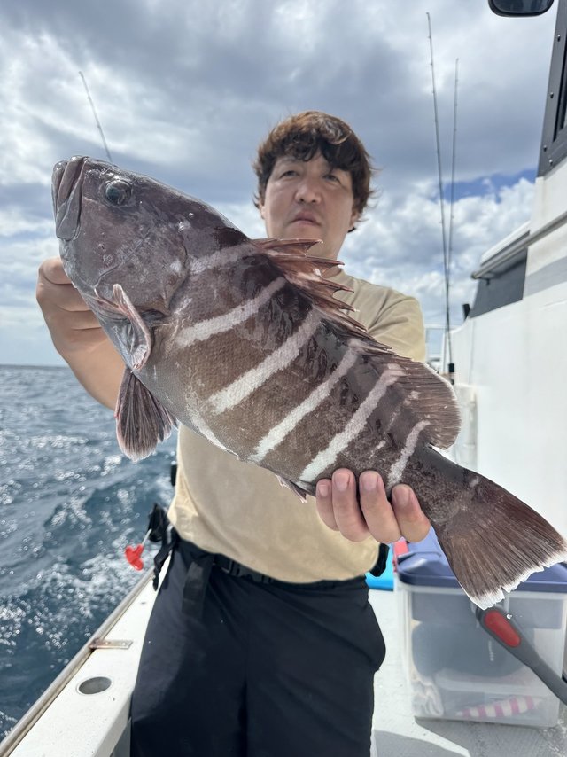 (マエソ)30cm 合計1匹 9/6近海スロー船 潮具合は良くなったり二枚潮だったりとコロコロしてましたが 魚の活性は良くアタリは終始出ていました! ハチビキはラッシュで 根魚もジャンボサイズ多く連発する中 ズドンと今日も良型マハタ浮上!! 5.8キロGETでした!! 明日からも色々狙っていきましょう!!