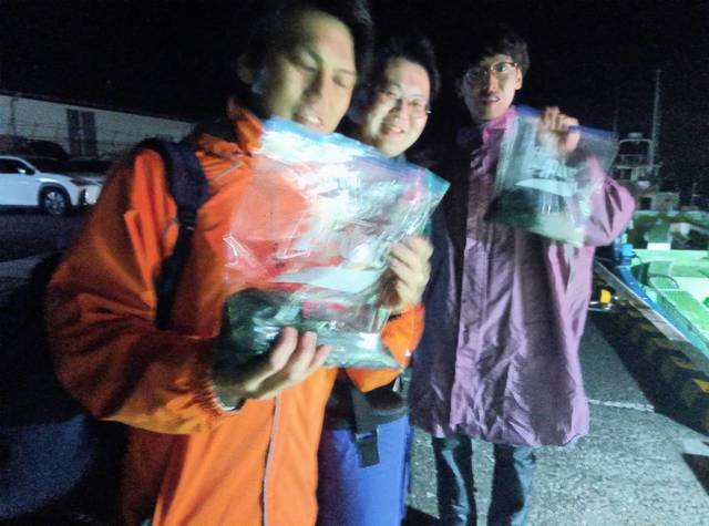 0.30~0.70kg 1~4匹 【午後アオリイカ船】 本日は程よく潮が流れ、コンスタントに当たりました~! 潮が良ければまだまだチャンスありそうですよ! 明日は午前カワハギ船、午後アオリイカ船(2名様より)で出船。 ご予約お待ちしております! 本日もありがとうございました!