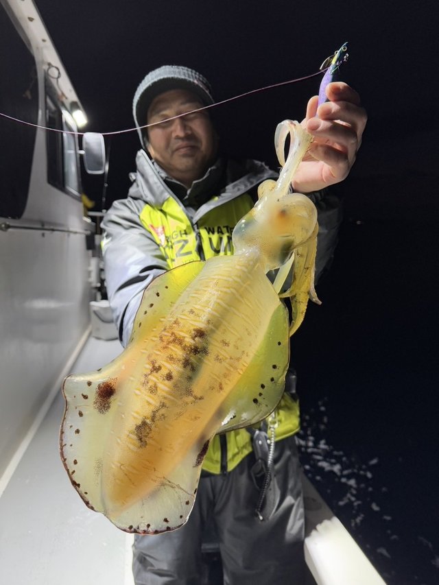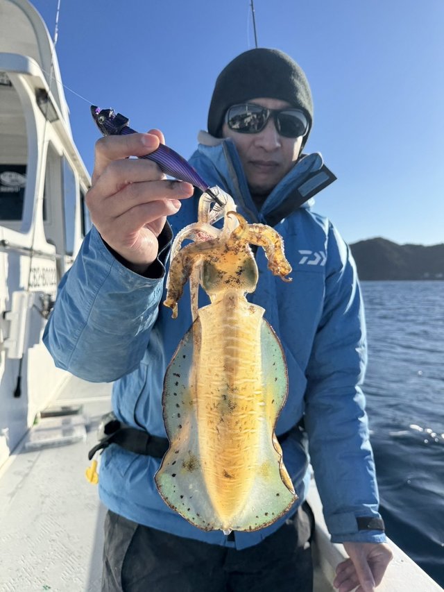 0.30~2.70kg 0~2匹 1/18午後ティップラン船 午後からも行ってきました! 風弱くトロリと流れて開始から ノリあり!最後までポツポツと! 強烈な引きで 今期最大の2.7キロ浮上ーー!! バラシ超多数ありながら トップ2杯が4名様! 初挑戦の方もヒット6回! アオリイカ2杯にモンゴウ2杯 バラシ2回と楽しんでいただけました! 明日も午後ティップラン船 出船確定!空席多数で チャレンジお待ちしております!
