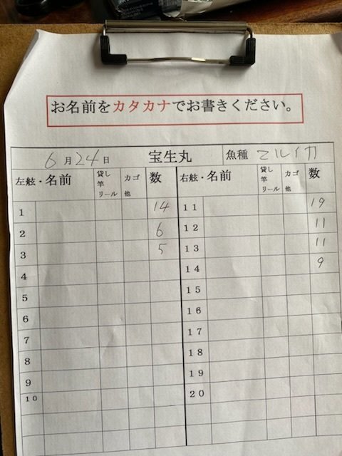 (ケンサキイカ)15~26cm 5~19匹 ハモノの入りが早くなかなかチャンスを貰えない事が多く難しい1日でした。 本日もご乗船ありがとうございました お疲れさまでした 感謝🙇♀️ 明日は現在2名さま。出船します みなさまのご予約、ご乗船お待ちしております🙇♀️