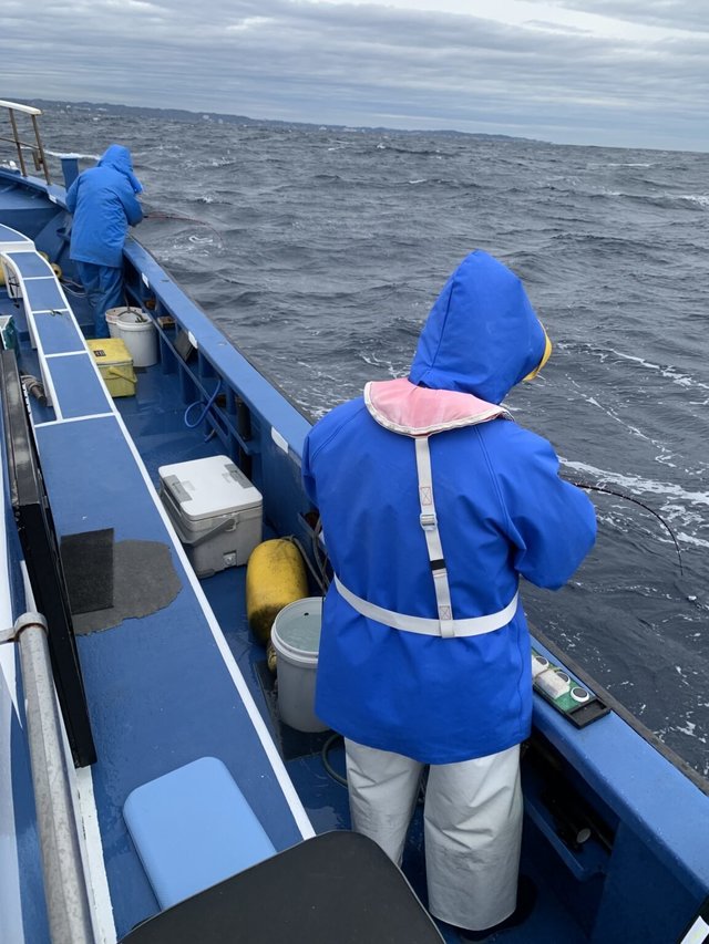 平均40cm 9:00~11:00、ヤリイカ釣り、一人約、0~1杯。外道にメダル2匹、型は約、3と4,5kg。 ヤリイカ好調の気配あり。