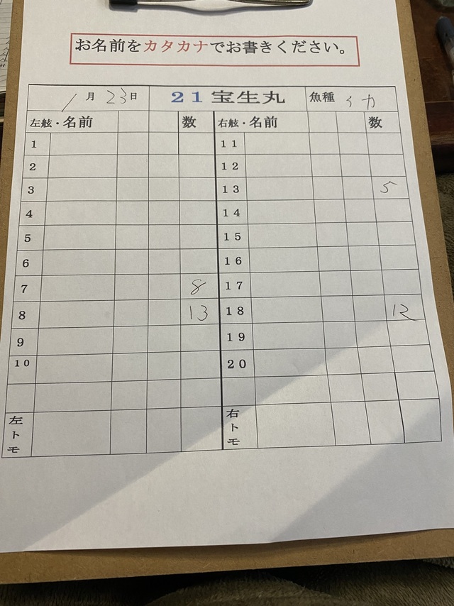 30~42cm 5~23匹 朝から順調に乗りあったが後半の多点掛けラッシュなく数伸びず ヤリイカ少々混じった
