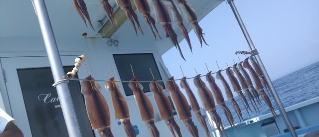 35~43cm 1~13匹 クロムツ 28~35cm 1~5匹 8月30日はクロムツ〜スルメイカで出船しました。 晴れで波が1m。 クロムツは終盤アタリがあり28〜35cmが1〜5尾。 スルメイカは35〜43cmが1〜13杯。 水温26.2度、澄でした。