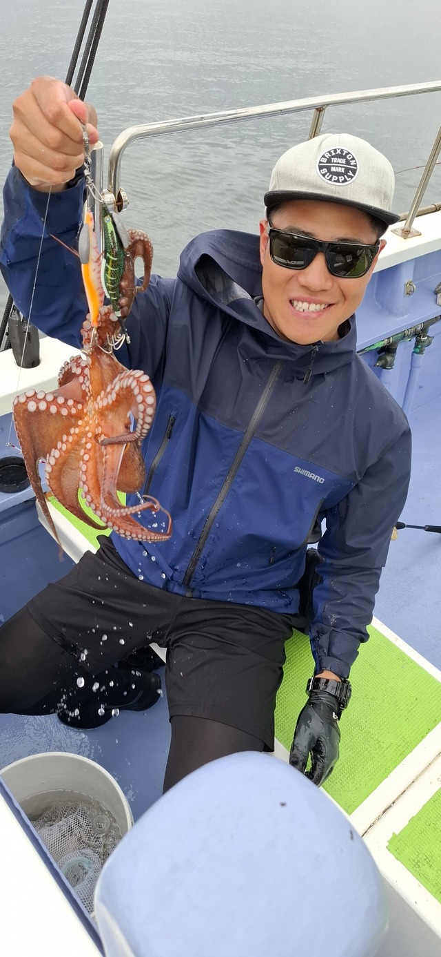 (マダコ)0.30~1.50kg 6~20匹 エギタコ船出船しました 開始早々から型見れサイズも良く 転々と移動しながら拾い釣り 早めに全員キャッチで一安心 ノリノリタイムもありながら 平均に釣れて規定数3名様 10杯以上12名様と絶好調 今日も小型リリースご協力頂ありがとうございました