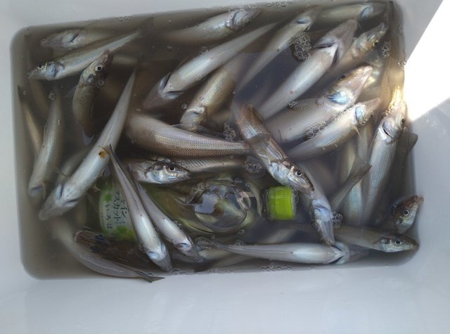 10~20cm 53~86匹 シロギス船。 8号で出船。本日もポツポツアタリ好調でした。水深:10M。