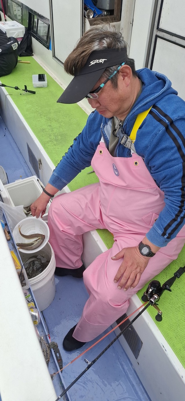 (マアジ)30~38cm 2~13匹 クロダイ 36~42cm 合計2匹 ムシガレイ 26~32cm 0~4匹 イトヨリ 36cm 合計1匹 アジ・アマダイ五目仕立てで、前半 アジから始めて早々に顔見れて、 下げ潮からポツリポツリと喰って クロダイ、マダイも顔見ましたが マダイは海面でハリス切れでした。 後半アマダイは残念ながら顔見れず ムシガレイ、イトヨリが顔出した程度でした。