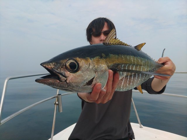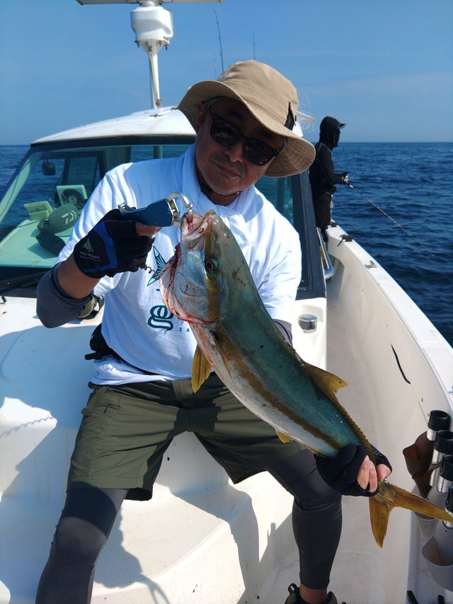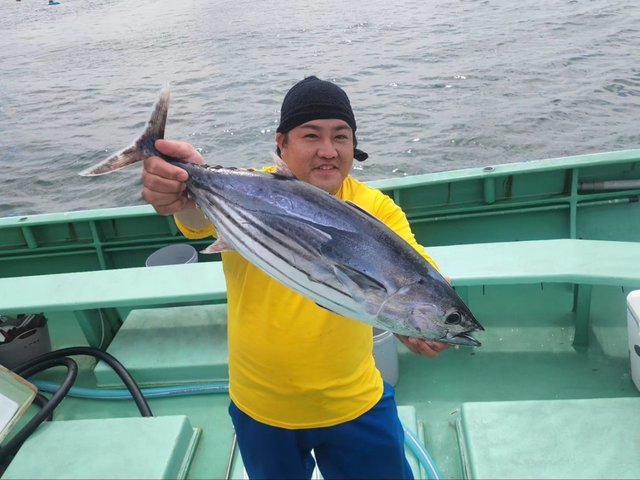 70~75cm 合計2匹 カンパチ 4.30~10.40kg 合計2匹 スマガツオ 1.50~2.00kg 合計4匹 本日は東京湾でキハダ・カツオ&カンパチジギングで出船しました。 4名様でのご乗船となり、大型回遊魚を狙っての釣行です。 朝方は鳥山を狙ってのキャストでスマガツオがヒットし、良いスタートを切ることができました(笑) キハダの群れも確認できたものの、残念ながらヒットには至りませんでした。 本日は魚の浮きがやや悪く苦戦する場面もありましたが、カンパチジギングでは4ヒット2ゲットと、大型のカンパチをしっかりゲットすることができました! 皆様に力強い引きを存分にお楽しみいただけたかと思いますw ★9月3日と5日も出船予定です! 大型回遊魚とのファイトを体験してみませんか?