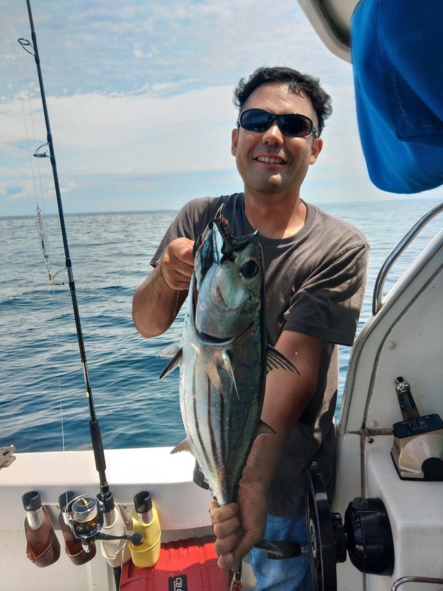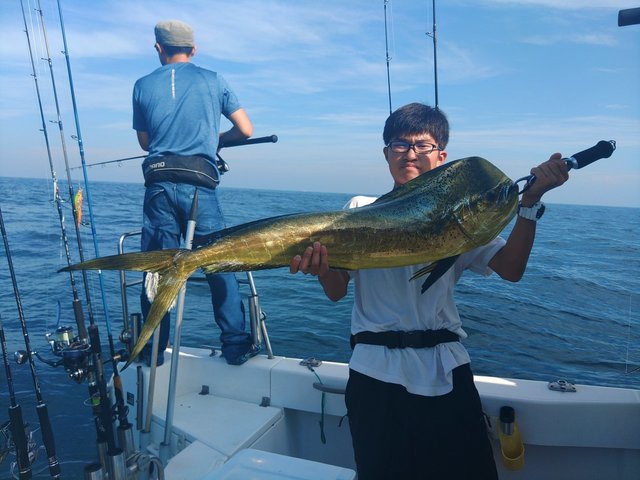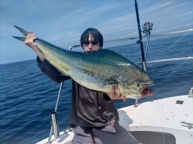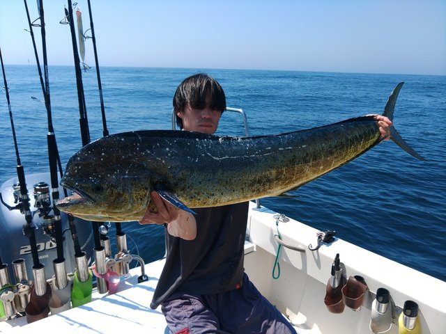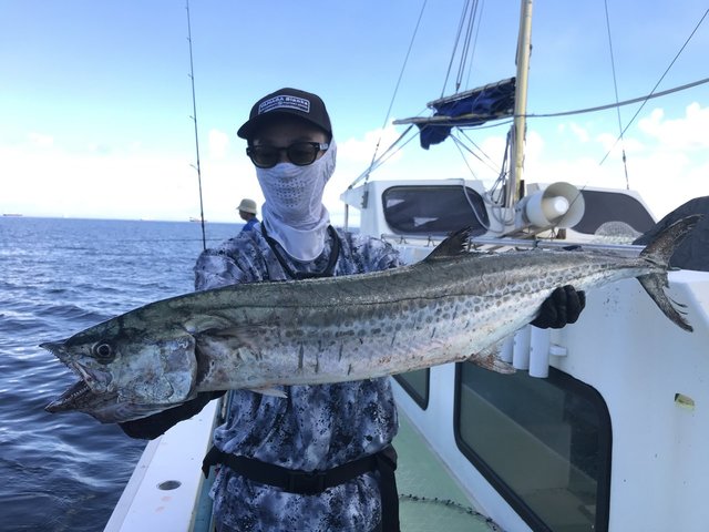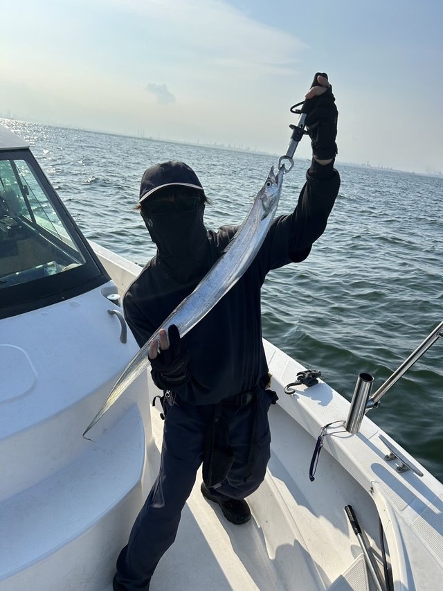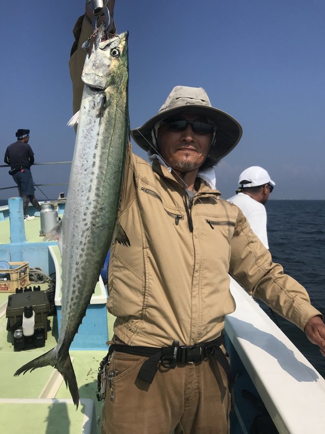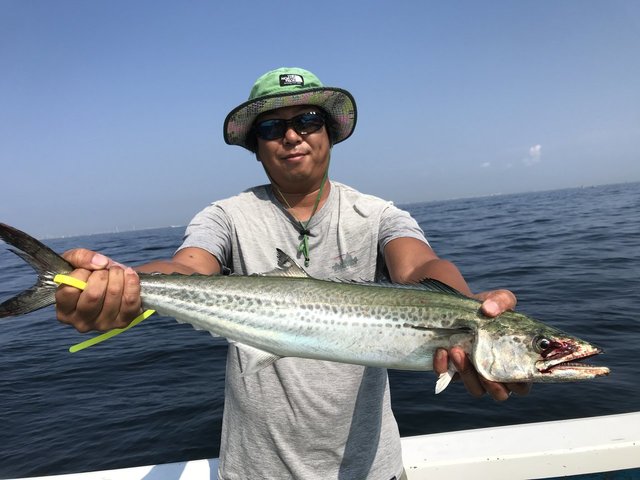 40~60cm 合計25匹 カツオ 1.80kg 合計1匹 タチウオ 100cm 合計1匹 本日は東京湾口でシイラと青物をターゲットに出船いたしました。 5名様でのご乗船となり、シーズンを迎えた青物たちを求めての釣行です シイラの活性が非常に高く、連続でアタックが来る好調な一日となりました。 残念ながらカツオは群れの移動が速く、十分にゲームを展開することができませんでした。 サワラは海面で跳ねる姿を確認したものの、バイトには至りませんでした。 それでもお客様には青物の迫力あるファイトをお楽しみいただけたようで何よりです。 ●青物シーズンはまだまだ続きます。 初心者の方も、タックルレンタルと丁寧なサポートをご用意しておりますので、お気軽にご参加ください。