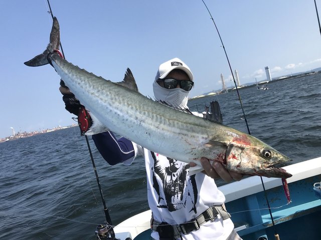 サワラ便。 3名様でご乗船いただきありがとうございました! 風強めでしたので風裏でやらせていただきました。 午前中はたくさん鳥山追いかけてミノーで良型キャッチ。 中盤から地元のポイントに戻って反応あてていきましたが1本追加していただいて終了となってしまいました。最後まで頑張っていただいたのにあたり少なくてすいませんでした。 佐竹さん、佐藤さん、和人さんありがとうございました。 サワラ2本・ タチウオ、シイラ。 サワラもタイラバも募集中です!