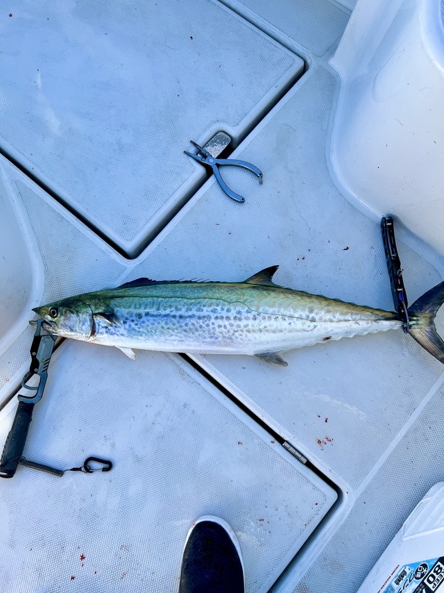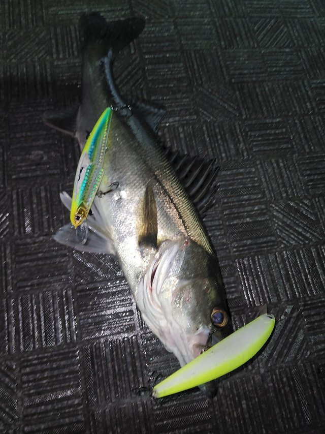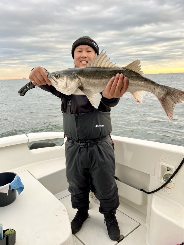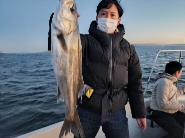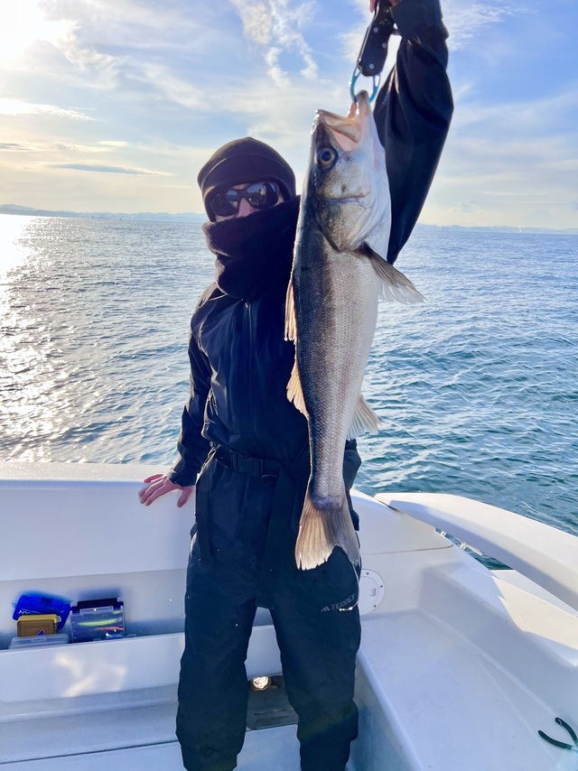 (スズキ)最大60cm 今朝はチャーターで出船。 朝一は鳥周りでサワラ狙いするも、今釣れてるエリアと違うので反応なしでした。 跳ねは少々みれましたが・・・。 以降はランカーシーバス狙い!コノシロ周り中心にやりましたが反応なしでした。 終盤にスト撃ちでパタパタとヒットありました。