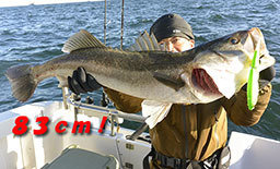 (スズキ)最大81cm 今朝はチャーターで出船。 遠征シーバスです。終始ビッグベイトで攻めてランカーゲット出来ました~~♪ (他78cm)まで