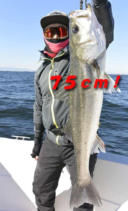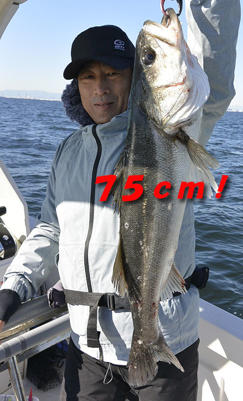 (スズキ)最大75cm 今朝はチャーターで出船。 ビッグベイトでランカー狙い!朝一から雰囲気あってコノシロも多々居て良い感じでしたがビッグバイト出ずでした。 風も止んでしまったので、終盤はスト撃ちで狙ってランカークラスまで♪