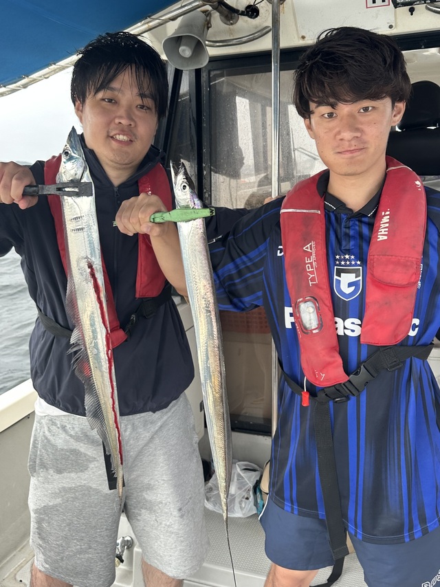70~110cm 0~2匹 アジ 18~29cm 18~48匹 タチウオ&アジリレー船、悪天候の中お越しいただきありがとうございました。 南西風強くポイントたどり着くまてかなり海悪くでしたが、ポイントは影なので問題なし!水温が4℃下がってしまったせいか? ここの所と様子違うようで食い渋りました、、 後半アジはポツリポツリと良い型多く順調でした^_^ 明日は「タチウオ」専門で行きますのでよろしくお願い致します^_^ まだ空きありますのでご予約お待ちしてますね^_^