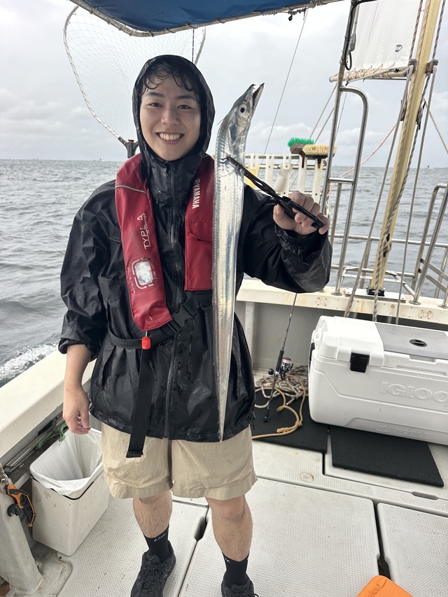70~116cm 4~50匹 【タチウオ船】3隻で出船しました。南下すればするほど南西の風も強まっていき、風影の猿島沖からスタート。今日も反応はバッチリと広範囲に出ており、ジグを落とすとバシバシとHITしてくれました!サイズは指3本級メインも、時折メーターUPもHIT!ただ、活性は高めなので慣れない方はジグのロストも多発・・。ジグを落とすときは糸を出し過ぎず、サミングしながらゆっくり落とすとフォールのアタリも分かり、ジグをなくすことも減ります! 昼を過ぎると風も雨も増してきたのでちょっと早めに帰航となりました。