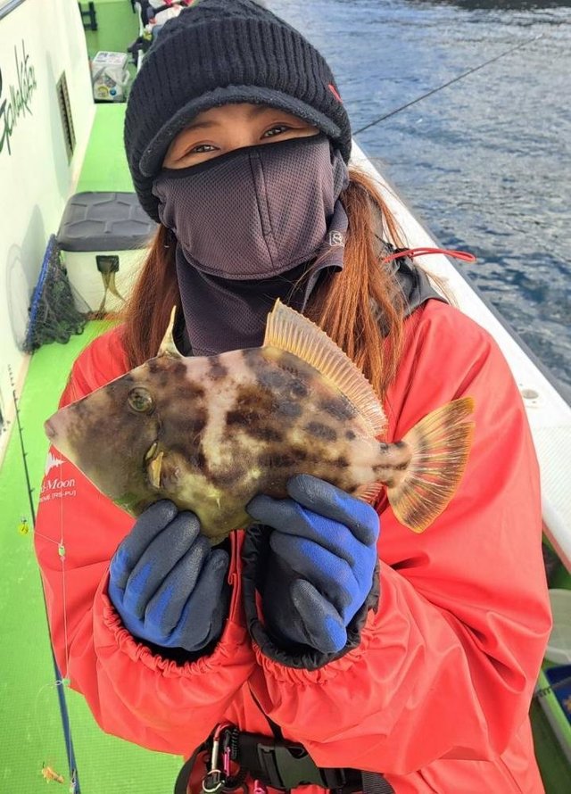 16~24cm 1~4匹 タチウオ 65~95cm 0~4匹 カサゴ ベラ フグ カワハギ+イカーちょいタチウオで‥(第8)。 水門の中から‥潮きたら出ます‥で‥ ‥なかなか‥(^_^;)潮が来なくて‥ 9時20分過ぎに‥ みんな前にー乗ってもらい‥ 潮位は105㎝ぐらいだったけど‥ズリズリしながらも‥止まらず(^_^;)‥出れて‥ ハンパに‥吹いてたが‥ 南下して→ 竹岡沖まわりで‥カワハギ+イカの同時狙いを‥ (ちょっとボチャボチャした海‥)(^_^;) やや浅めーやや深め.まわりを‥転々と.して‥ズラしーズラしーして‥ うまくハマれず‥(^_^;)‥ カワハギは‥単発で.ポッン.(^o^).と‥ (手のひらサイズに.やや小ぶりまじり) 他カサゴ.ベラ.フグ‥。 同時狙いのイカは‥顔を見れず‥(>_<)‥ →後半に‥ちょいタチウオを‥走水沖まわりの水深は70m前後‥ 下から4ー12m前後で.あたりを出せて‥ 誘いと,合わせの‥タイミングが.合う方は.ポッン(^o^).と.ゲット♪ ‥全体的に釣れず(^_^;)‥ (やや小ぶりーまぁまぁサイズ) →帰りがけに‥かいほう.まわりで‥カワハギ+イカの同時狙いを‥ (まだ.ちょっとボチャボチャしてた)(^_^;) ズラしーズラしーして‥なんとか.ポッン.(^o^).と‥カワハギ‥何枚か追加‥