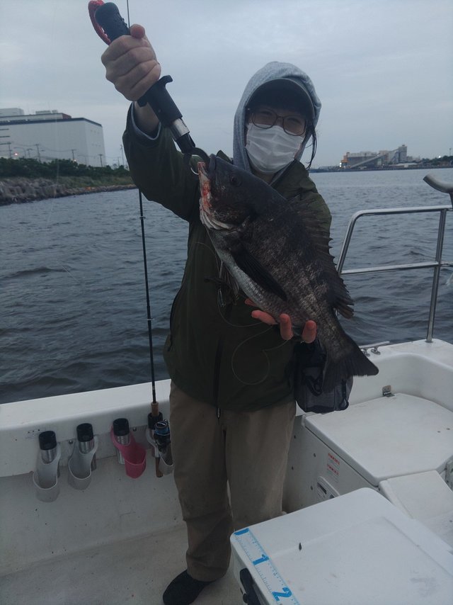 (キチヌ)45~49cm 合計3匹 午前チニング 雨の中、2名様で出船致しました。 朝、ポツポツとアタリが有りましたが2枚のみ。 潮止まりだったので、流れればと期待してましたが、真逆のアタリなくなり移動。 ポツポツとアタリが有り、ようやく追加して風と雨が強くなってきたので、終了となりました。