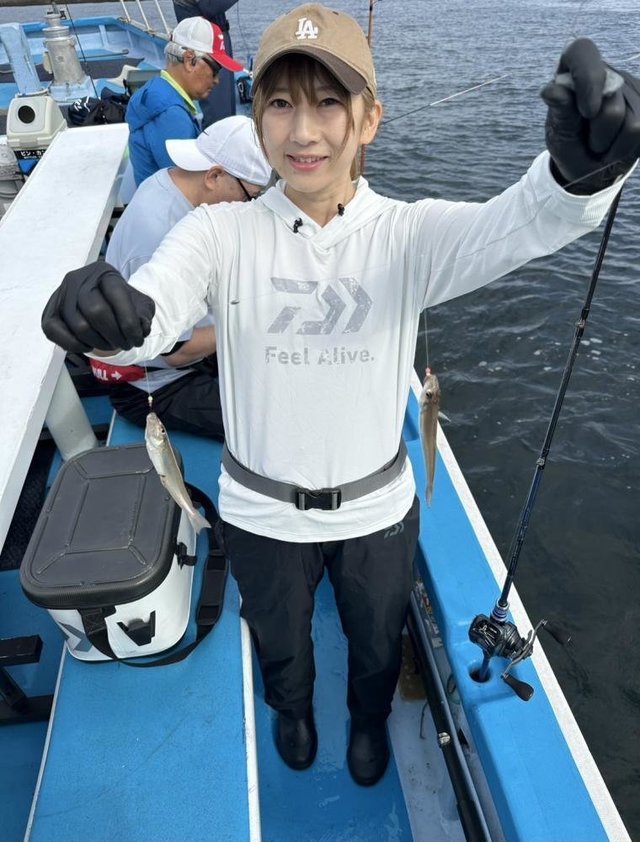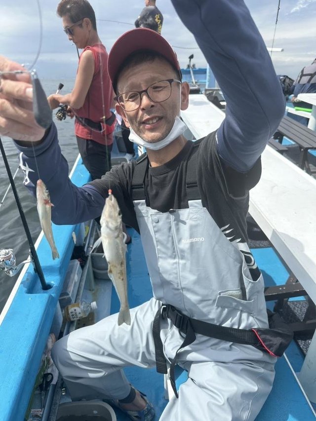 15~20cm 5~15匹 タチウオ 80~95cm 0~9匹 アジ 14~20cm 2~20匹 予報が‥ちょっと変わって‥(^_^;)‥沖の方の釣り物は‥キビしいかも‥で‥ ‥‥ ☆船長判断で‥臨機応変のリレー釣りを‥させてもらいました‥ ‥‥‥ ☆タチウオーシロギス(+泳がせ)ーアジ.で‥ (第8)+(第7)出てました‥ …… (第8)の‥ タチウオ ☆トップは箱崎さん(^^)v (船中8人で24本) ‥‥‥ シロギス ☆トップは2人.S上さんと箱崎さん(^^)v(^^)v ‥‥‥ アジ ☆トップは箱崎さん(^^)v …… 微風ー南西風そよそよーふわふわ. …… レクチャーを.して‥出船→ ‥(第8)+(第7)‥同じ様な動きを‥ ‥‥ タチウオから‥湾奥の浅めまわりを‥ ちょこーちょこー反応は.あったが‥簡単には.あたらず(^_^;)なかなか掛からず‥ ‥ズラしーズラしーして‥ (下から2.5ー5mぐらいで)誘いと,合わせのタイミングが.合う方は‥ポッン.ポッン.(^o^).と.ゲット♪ (まぁまぁサイズ主体) …… 南西風そよそよーしてきたので‥南下して→ 昼から‥木更津沖まわりでシロギスを‥ ズラしーズラしーして‥ところ.どころで‥ポッン.(^o^).ポッン.ゲット♪ (中型サイズ主体に.やや小ぶり.まぁまぁの.まじり) ‥‥ (第8)‥泳がせ‥ヒットしたが‥あぁーぁ(^_^;)で‥不発 ‥‥ また.ちょっと.強くなってきて‥海がボチャボチャしてきたので‥ 帰りがけに→風影まわりで‥ちょいアジを‥ 間が.空きながら‥ポッン.(^o^).ポッン..ゲット♪ (小中サイズ主体) …… 帰り道‥波しぶきは.かぶったが‥ ‥わりとフツウに走れ→ 16時‥そのまま水門の中に‥ ‥‥ お付き合いしてくれた.お客様ありがとうございました(^_^)