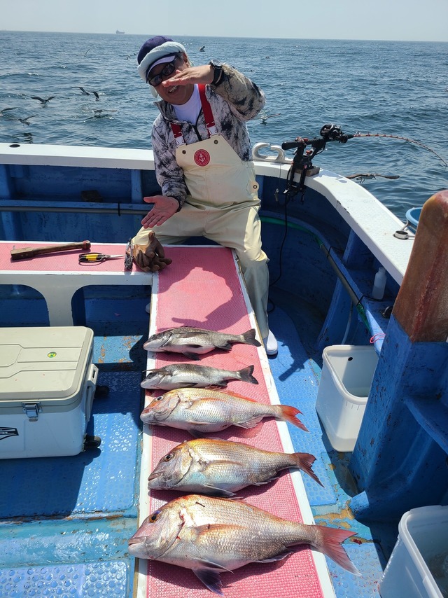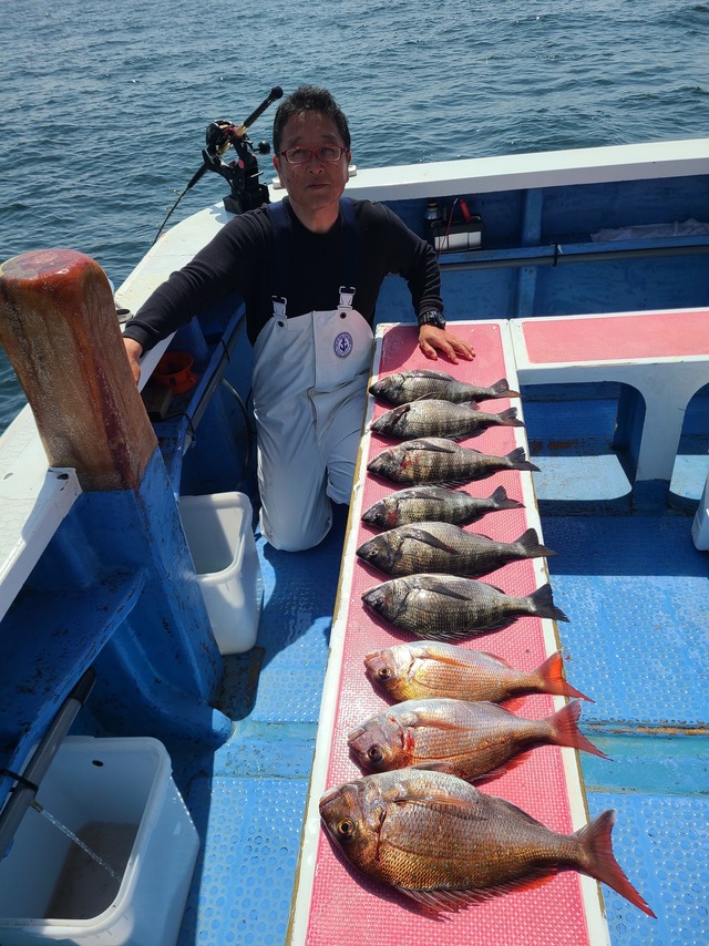 最大1.60kg 0~1匹 クロダイ 0~4匹 イサキ ハナダイ アジ 10号タイ五目です。本日のマダイ船は何とかアタリポツポツでした。 イサキ場ではもう少しアタリが出てもよかったのですが、なかなかアタリ来なくて苦戦。 その後ポイント転々とし拾い釣りでした。 本日もご乗船ありがとうございました。