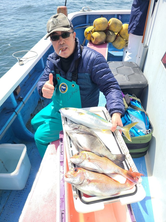 0.70~3.00kg 0~2匹 クロダイ イナダ いよいよ春の一大イベントノッコミシーズンが開幕の気配。剣崎沖では、待望の大型マダイが続々と姿を見せ始めています。 本日も強烈な引き味を見せる2〜3kgクラスの大型マダイが浮上中。 産卵を控えた大鯛特有の重量感あふれるファイトが船上を熱くさせています。 現在は自己記録更新も狙える『一発大物勝負』のロマンあふれる展開ですが、シーズンがさらに進行し群れが固まってくれば、コンスタントな『数釣り』も存分に楽しめるようになるポテンシャルを秘めています。