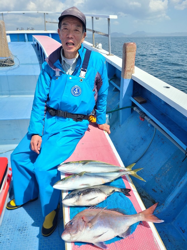 1.00~3.80kg 0~2匹 イナダ クロダイ 今日は、朝の内は、イサキがポツポツと釣れその後マダイがポツポツと釣れ他クロダイ、イナダ混じりポツポツと釣れました。マダイの型も良く最大3,8キロも釣れました。明日も出船します宜しくお願いします。