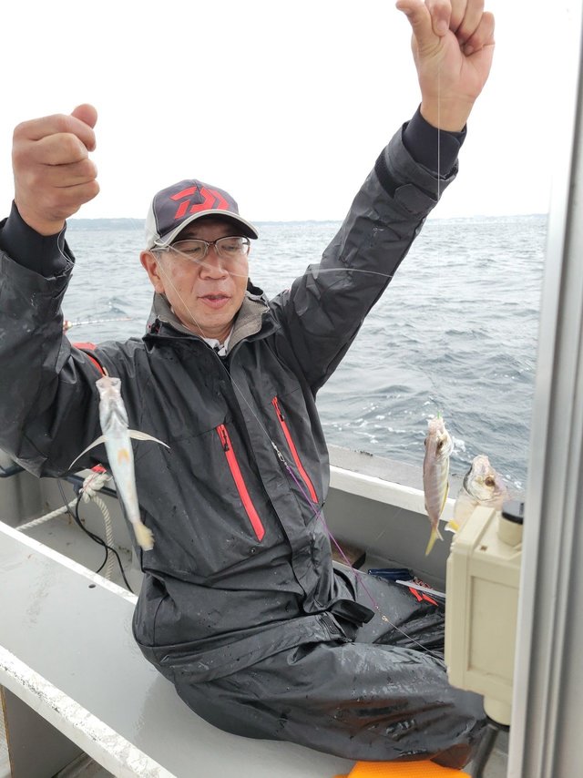 アマダイ イトヨリ レンコダイ トンビギス アオハタ ホウボウ カサゴ サバ ガンゾウヒラメ オジサン 今日は北風の雨陽気で 凍える釣行でした。 私はアマダイ船を担当させて頂きました! ほぼフルレンタルチームということで 朝からレクチャーをさせて頂きました。 潮は時々二枚潮になりましたが 1日しっかり動いて 生体反応も多めでした。 特に目立ったのはイトヨリ! 最近は嫌という程レンコダイ、トンビギスだらけだったのですが 逆にその2種は少なめでした! 後半戦はレンコダイは顔を出すようになりましたが トンビギスは船中顔を見なかったのでは? という感じ……。 皆さんとても丁寧に少し細めのゲストも しっかり血抜きしていて 食卓が賑わうのが目に浮かびます。 大本命アマダイはご機嫌ななめの様でしたが 9時30分頃にパタパタっと35cmほどの 良型が顔を出してくれました。 その後私の船では良いポイントに当てれず 次に顔を出したのは14時15分。 実は雨も強くなり早上がりの提案も出たのですが 皆さんすごくやる気満々で ラストまで頑張りたいとのことで しっかりみっちりやらせていただきました! ラストひと流しの時も女性のお客様が 「これが最後かな?絶対アマダイ釣る!!!!!!」 と、仰っていて有言実行!!!!!! 見事に14時25分に念願のアマダイをゲット! 釣りはメンタルですね😏✨ 本当によく頑張ってくれました!