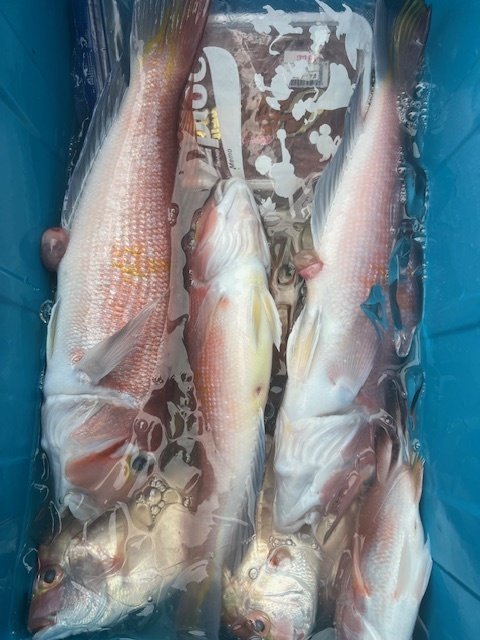 アマダイ 26~44cm 0~6匹 イトヨリ キダイ カサゴ ヒメコダイ ★アマダイ船:アマダイ0~6匹。前日よりはアタリ、エサ取りも多い印象でした、残念ながらお一人0が出てしましましたがアマダイ0~6匹。他にイトヨリ、キダイ、カサゴ、カイワリ、ヒメコダイ
