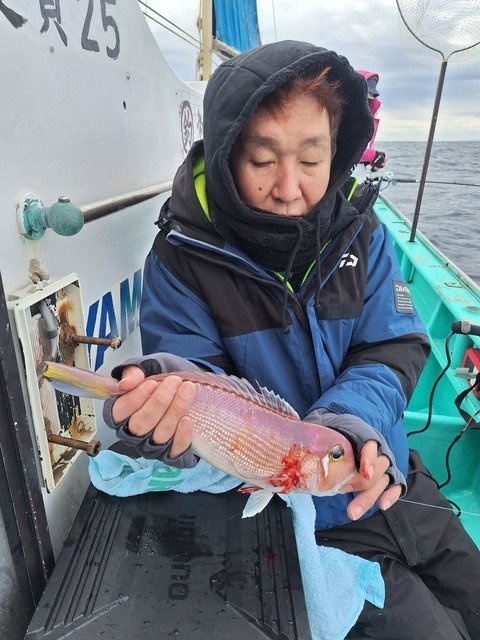 シロアマダイ 36~42cm 0~2匹 アマダイ 21~40cm 0~5匹 イトヨリダイ オニカサゴ シロアマダイ好!!◎ ポカポカいいナギでしたね~(^^) 昨日と変わって全域潮流れず、、、でしたが朝から良型シロアマダイ連発!! アカアマ狙いは広範囲に探って拾い釣り、な1日でした。 そんな中胴の間フルレンタル釣り初挑戦の3名様グループが大健闘!! 全員良型ゲット&紅白達成した方もいてお土産バッチリハナマルでした◎◎ 基本に忠実が1番! 色々考えて試してみるのも楽しみのひとつですけどね~(^^) 初心者の方も大歓迎です!チャレンジお待ちしておりますm(__)m 次回出船18日(火)~です。