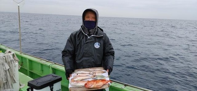 最大32cm 竿頭6匹 イナダ 50cm 合計1匹 カンパチ 50cm 合計1匹 イシダイ 42cm クロダイ 43cm カワハギ イトヨリ 24~35cm 竿頭6匹 アジ 竿頭5匹 シロアマダイ 26~45cm 0~3匹 ソウダガツオ 30~35cm 5~23匹 サバ ホウボウ 合計2匹 本日は、五目で出船しました。 天候:晴れ。 風:北。 潮:西へ流れる。 場所:平塚沖。 ・イナダ、 50cm、 1匹。 ・カンパチ、 50cm、 1匹。 ・イシダイ、 42cm。 ・クロダイ、 43cm。 ・カワハギ。 ・カイワリ、 32cm、 TOP6匹。 ・イトヨリ、 24cm~35cm、 TOP6匹。 ・アジ、 TOP5匹。 ・シロアマダイ、 26cm~45cm、 0匹~3匹。 ・ソウダガツオ、 30cm~35m、 5匹~23匹。 ・サバ。 ・ホウボウ、 船中2匹。 などが釣れました。