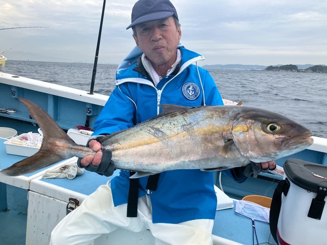 47cm 合計1匹 イナダ 38~45cm 0~4匹 イサキ 20~30cm 1~8匹 今日はウィリー五目に出船しました!朝一ウネリが高くパラパラってイサキが当たり食いが良さげだったけどほとんどの方が酔ってしまいだんだんにウネリが収まりイナダ、良型イサキがたま~に当たり皆さん釣れてイナダもポツポツ当たり良型ヒラソーダ交じりでした!イナダ0~4本!イサキ20~30cm1~8匹!でした! 帰り際1時間シマアジ狙い!バラシもあってレンタルの方が47cmキャッチ出来ました! 11月土日平日空きあります! よろしくお願いいたします!