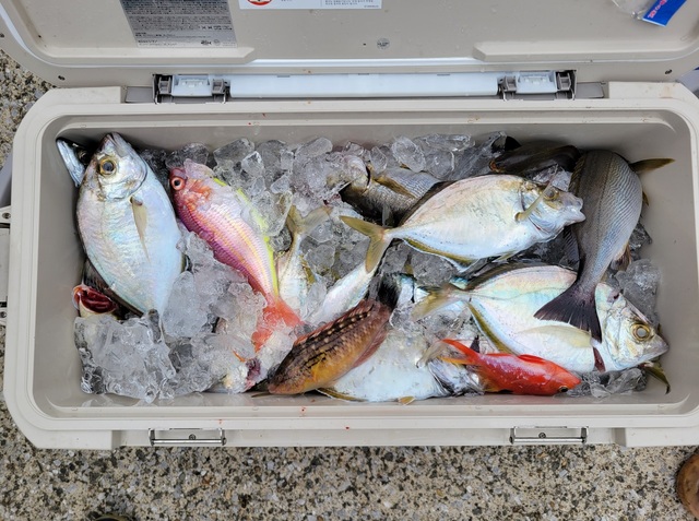 1.70kg 合計1匹 カイワリ 25~30cm 合計30匹 イサキ 23~32cm 合計35匹 マサバ 34~37cm 合計10匹 イトヨリ 25cm 合計1匹 マダイ 0.40kg 合計1匹 ウィリー五目釣りに出船しました。 今日はカイワリ中心に狙ってカイワリ主体にイサキ,イトヨリ,マダイ,メジナ,サバ等が釣れてくれました。 海上強風でバラシも多数でしたがレンタルのお客様でクーラ賑わいました! まだまだウィリー五目楽しめそうです 御待ちしております。