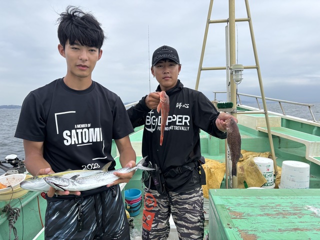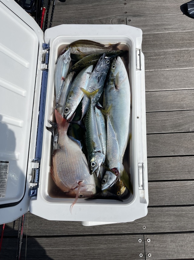 カンパチ イナダ ワカシ 30~43cm 1~8匹 アジ イサキ 18~24cm 5~30匹 ヒラスズキ カサゴ アカハタ サバ カイワリ ソーダガツオ 今日も青物五目乗合船で出船しました! 青物皆様、全員ゲットー! 皆様、ワカシ・イナダ・ショゴなど釣れましたが バラしなどもあり もう一声お魚の食い気が上がればなぁと。 他にアジ、サバ、イサキ、ソーダガツオなども釣れて 良型ヒラスズキも! 本日ご乗船の皆様、ありがとうございました! またのご乗船をお待ちしております! 9、10月も平日、土日共に空席多数! 皆様からのご予約をお待ちしております。 仕立船の募集もしておりますのでご相談ください。 ⬛︎青物五目乗合船 9/20(土)、9/21(日) 9/23(火)、9/26(金)、9/27(土) 10/4(土)、10/5(日)、 10/11(土)、11/12(日)出船確定! ご乗船お待ちしております。 ご予約をお待ちしております。 ⬛︎スポットLT中深場五目乗合 9/29(月) 10/10(金)出船確定!