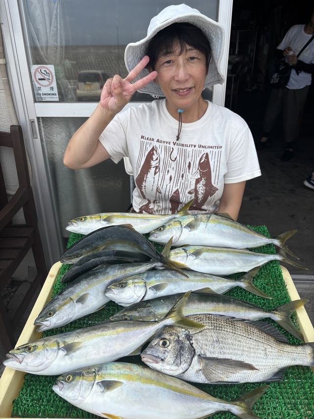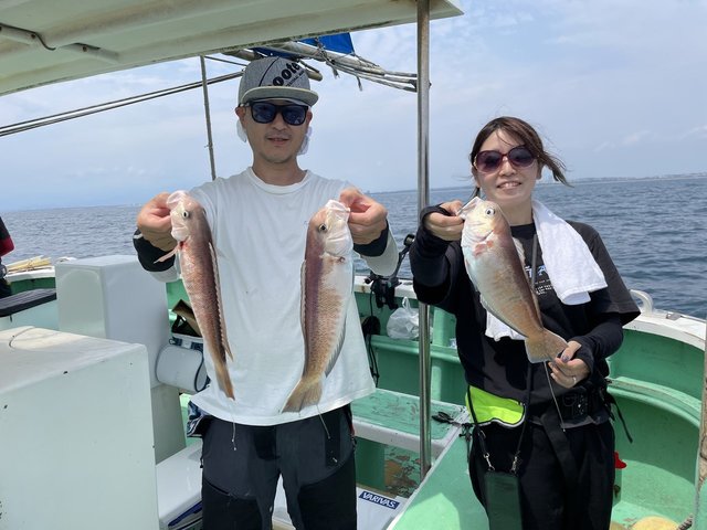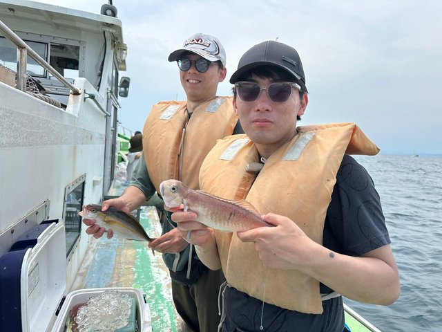 (ブリ)45~50cm 1~6匹 ハナダイ 0.40~0.80kg 1~2匹 アマダイ 23~42cm 0~5匹 ウィリー五目ハナダイ0.4~0.8㎏1~2枚イナダ45~50㎝1~6匹アジ23~25㎝4~10匹Etc ターゲットのハナダイイナダは全員Getと好調でした他にアジと皆さんお土産はバッチリで嬉しい帰港です! ウィリーアマダイ五目アマダイ23~42㎝0~5枚イトヨリ22~30㎝0~2枚アジムシガレEtc アマダイは朝のうちは喰いが悪く苦戦しましたが後半からアタリも出だし良型42㎝も混じりHotしましたゲストはイトヨリムシガレとまずまずでした!