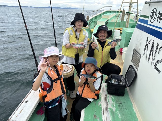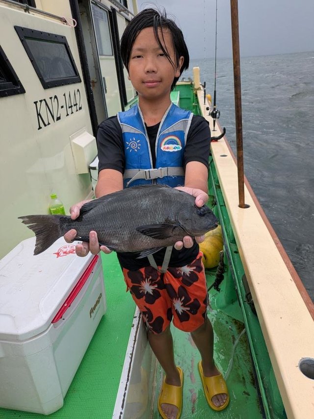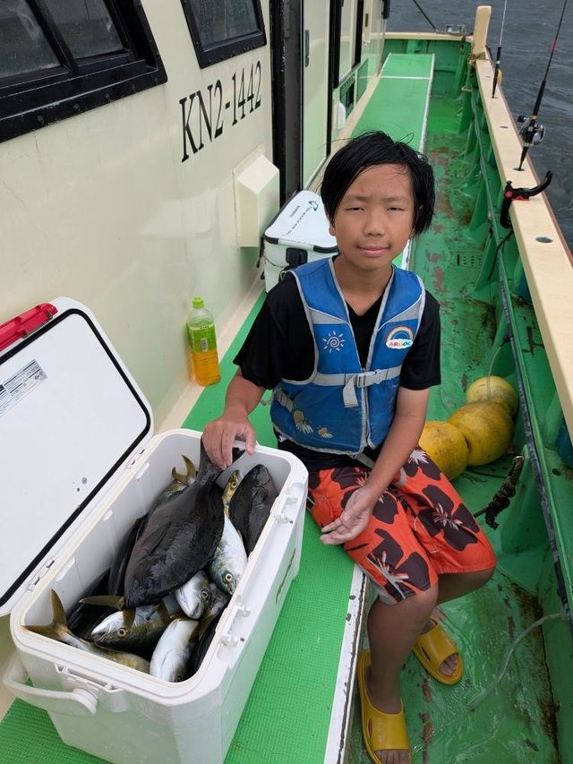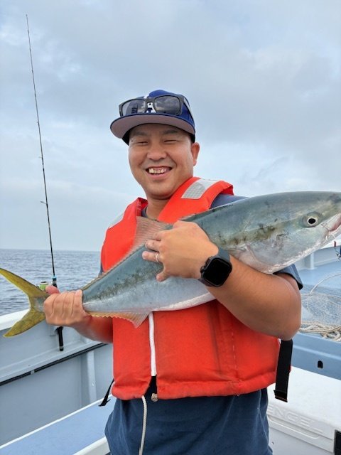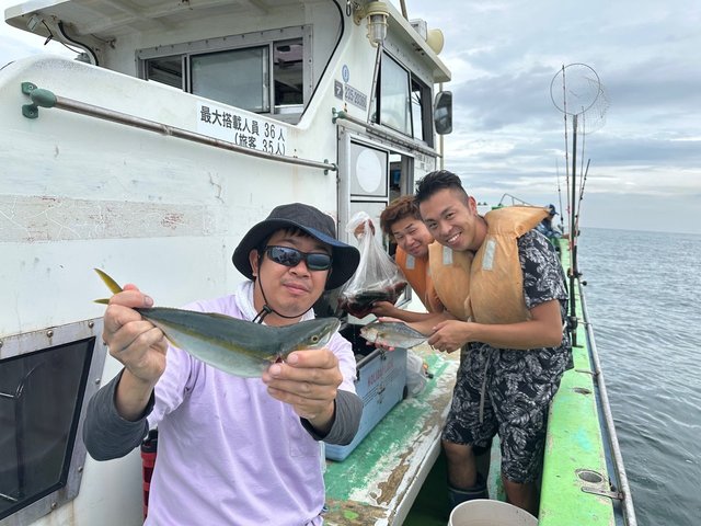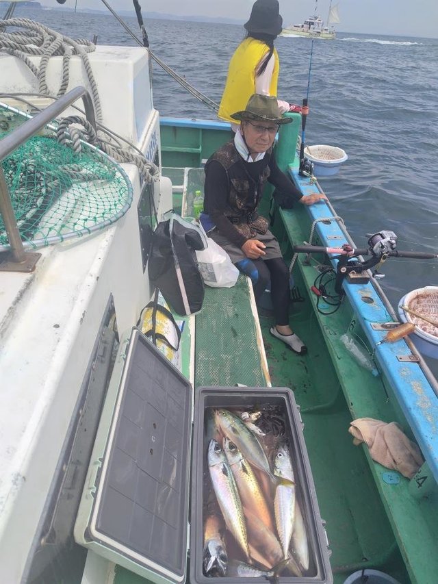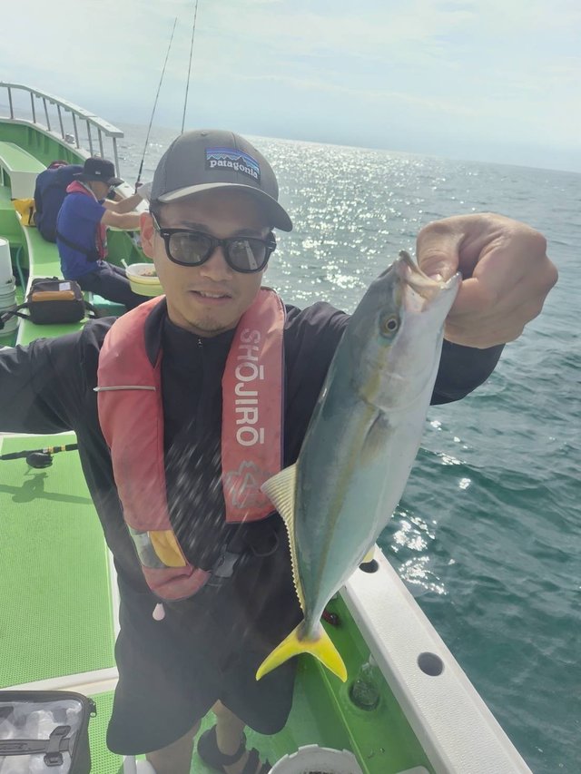 (ブリ)4.50kg 合計1匹 マダイ 0.60~1.20kg 0~3匹 アジ 25~35cm 10~15匹 マタイ五目~アジのリレー釣りでした。マタイの外道にワラサがポッポッ当たりましたがサメに横取りされ1本でした。アジもポッポッ釣れました。外道にクロムツ、カンコが混じり皆さんお土産になりました。今日も有り難う御座いました。チャーター船、尚二郎丸釣果です