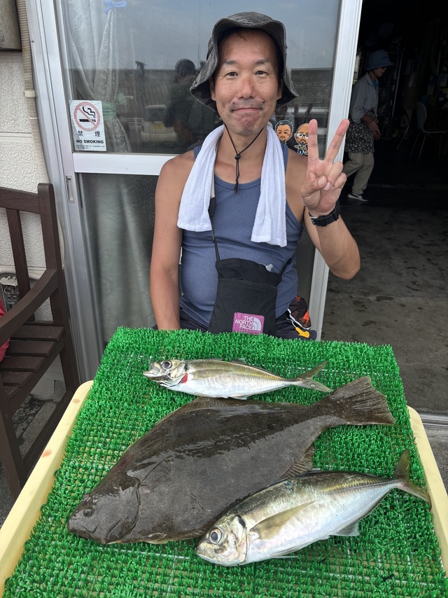 (ブリ)50~52cm 0~1匹 ヒラメ 1.15~1.50kg 0~1匹 本日もご乗船ありがとうございました。 イナダは、ポツポツでした。 他、ヒラメは、船中2尾、 クロダイ アジが、5-20尾 明日は、お休みになります。