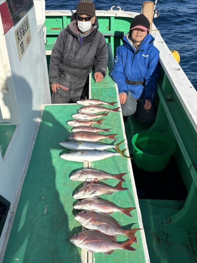 (ブリ)0~4匹 ハナダイ 0~3匹 クロダイ 0~2匹 ヘダイ 0~6匹 イシダイ シマアジ アジ 8~24匹 ヒラメ 第2優神丸は五目釣りでした。 今日はベテランさん達の登場です。 各所を周りましたが、色々ゲット出来ました。 ハナダイ0〜3枚、クロダイ0〜2枚、ヘダイ0〜6枚。 イナダ0〜4本、イシダイ、シマアジ、アジは8〜24。 そして泳がせでは2キロと5キロのヒラメも釣れました。皆さんの問い合わせお待ちしております。