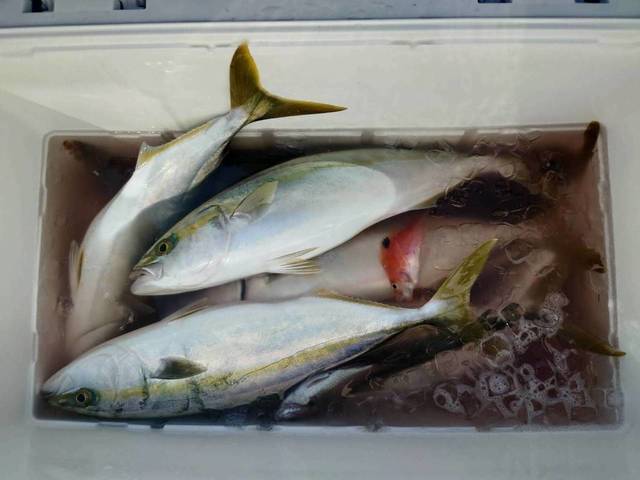 (ブリ)25~38cm 2~6匹 イナダ五目船 外道:カンパチ・トラフグ・シイラ・豆アジ・ウルメイワシ・サバ