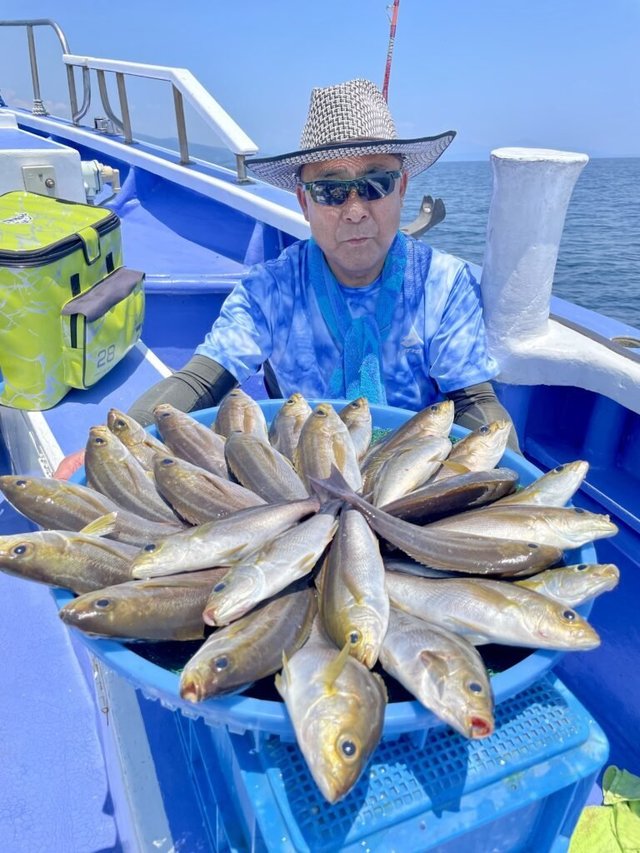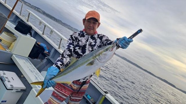 イナダ カンパチ 36~43cm 合計8匹 マダイ 40cm ハタ キジハタ ワラサ 80cm ホウボウ 30~45cm 合計5匹 サバ 平均40cm 合計5匹 アジ 38cm ソーダガツオ 本日はライトルアーで 出船しました。 今日は3名様でゆったり出船です。 天候は晴れ。 風は北から南。 潮は西⇔東へ流れる。 イナダ、 カンパチ 36cm〜43cm 船中8匹、 真鯛 40cm、 ハタ、 キジハタ、 ワラサ 80cm、 ホウボウ 30〜45cm 船中5匹、 サバ 40cm 船中5匹、 アジ 38cm、 ソーダカツオ、 などが釣れました 本日も外道多彩。 土曜日は五目で出船します。