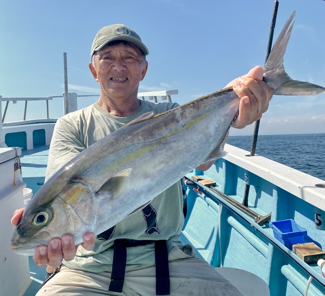 38~46cm 0~4匹 イナダ 36~47cm 5~20匹 マダイ 1.00~2.60kg 0~1匹 本日もご乗船ありがとうございました。 エサでは、イナダが平均10尾以上 サイズも良いですよ。 カンパチに、マダイや、クロダイ、 イサキ、アジ、ソーダ、スマカツオ、ウルメイワシ。 ルアー:イナダ10-15尾 カンパチ0-14尾 ルアーでも、カンパチ好調でした。 明日、明後日は、お電話にて、ご予約をお願いいたします。