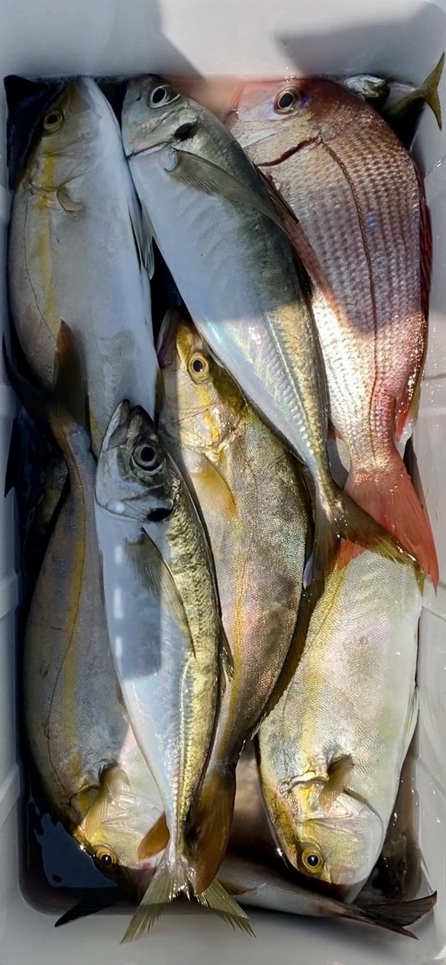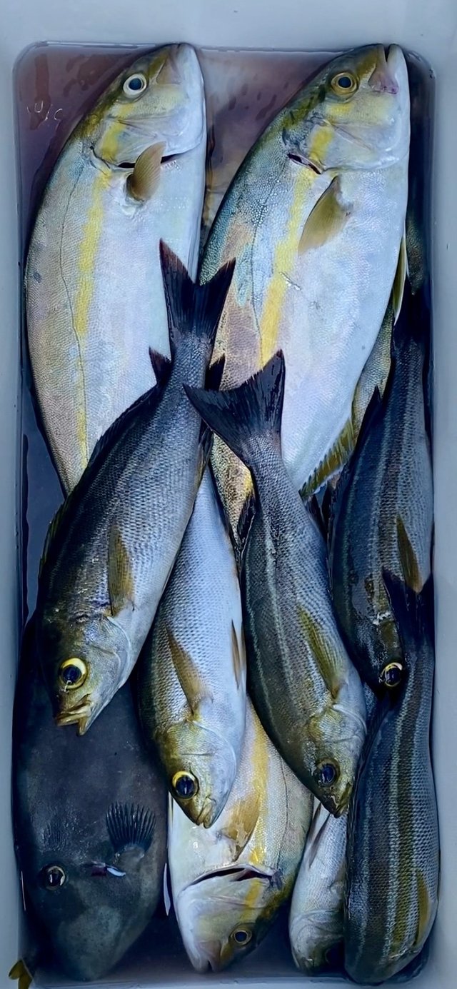 (カンパチ)ワカシ 28~41cm 1~8匹 アジ 18~21cm 5~40匹 サバ アマダイ ホウボウ イサキ 今日も青物五目乗合船で出船しました! 良型ショゴ継続中! 良く引き美味しいサイズです! アジも狙った方はポチポチと。 アマダイ、ホウボウ、ウリンボイサキなども顔見れました! 親子ペアの方もショゴ・ワカシゲットできて良かったです! 本日ご乗船の皆様ありがとうございました! またのご乗船をお待ちしております。 8/30(土)、8/31(日)も青物五目乗合船で出船確定! 9/2(火)はお後1名様ご予約で出船確定。 皆様からのご予約をお待ちしております。 9月も平日、土日共に空席多数! 皆様からのご予約をお待ちしております。 仕立船の募集もしておりますのでご相談ください。 ⬛︎青物五目乗合船 8/30(土)、8/31(日) 9/5(金)、9/6(土)、9/7(日)、 9/8(月)、9/14(日)、出船確定! ご乗船お待ちしております。 ご予約をお待ちしております。 ⬛︎スポットLT中深場五目乗合 10/10(金)出船確定! 9/10(水)出船予定お後2名様ご予約で出船確定! ご予約お待ちしております。