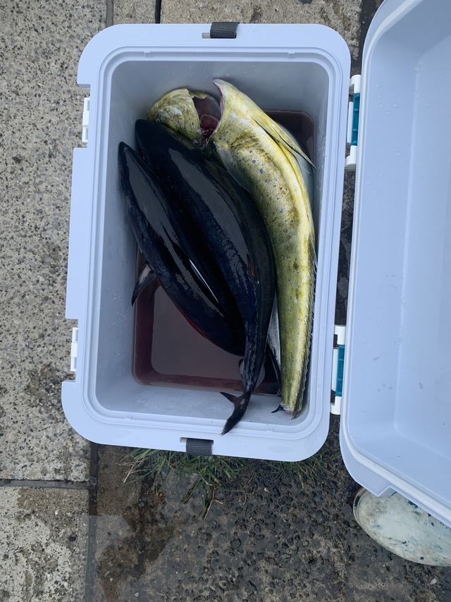 イナダ 34~38cm 0~2匹 カンパチ 34~40cm 0~3匹 アジ 24~28cm 1~12匹 イトヨリ 28~40cm 0~7匹 シイラ 合計3匹 ホンカツオ 最大43cm 0~2匹 アマダイ 27~43cm 0~3匹 サバ 30~37cm 竿頭6匹 マルソウダ ソーダカツオ 30~40cm 0~3匹 キダイ 本日は五目で出船。 風は北から南。 潮は東に流れる。 イナダ 34㎝~38㎝ 0~2匹、 カンパチ 34㎝~40㎝ 0~3匹、 アジ 24㎝~28㎝ 1~12匹、 イトヨリ 28㎝~40㎝ 0~7匹、 ソーダカツオ 30㎝~40㎝ 0~3匹、 シイラ 3匹、 本カツオ 43㎝ 0~2匹、 アマダイ 27㎝~43㎝ 0~3匹、 サバ 30㎝~37㎝ トップ6匹、 などが釣れました。 明日は台風の為お休みです。 火曜日のショートルアーより 出船予定。 募集中です。 天候回復致しますように。