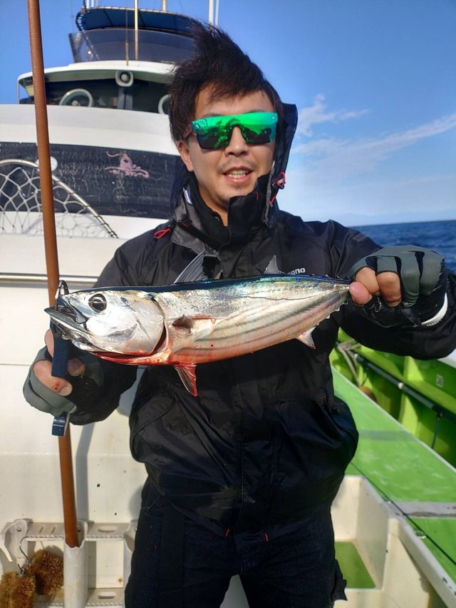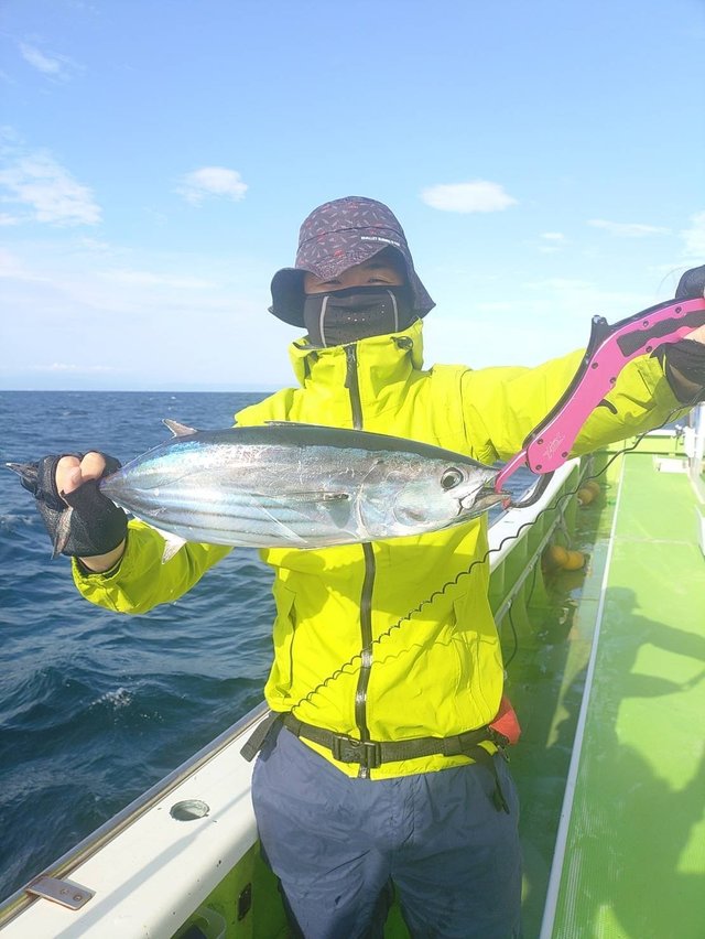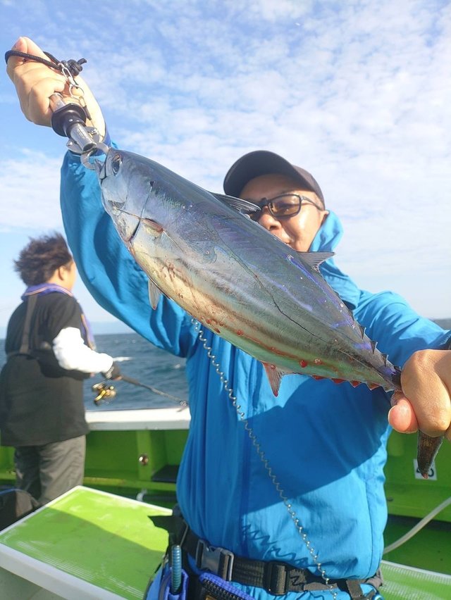 カツオ 1.20~2.00kg 0~5匹 サワラ サバ 痛恨のハリス切れ、、、 前半はカツオ狙い! 今日もたまーにカツオがHITする状況で、バリバリとはいかず難しい中のカツオ釣りでした。 コマセが半分くらい無くなったところで早めにマグロ狙いへ! クラゲ流し釣りで開始早々に[食いそうですよ~]とアナウンスした直後にキハダHIT出ましたが、、、 痛恨の飲まれ切れ、、、 残念でした(;;) この後はソナーに魚影映るもキハダのアタリは出ませんでしたね。